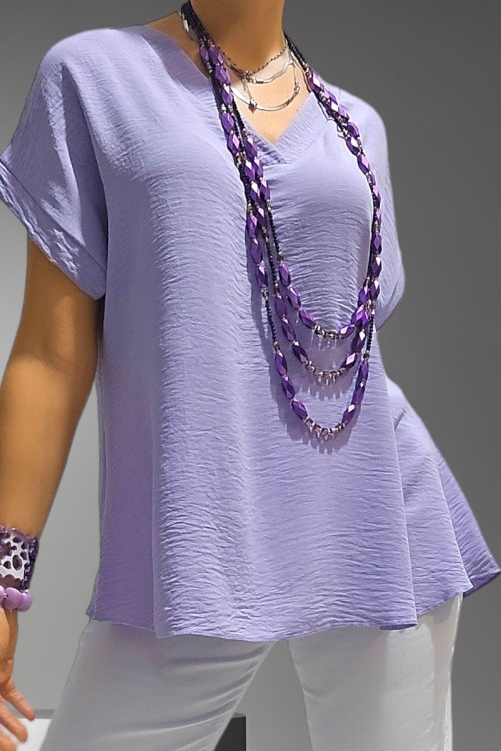 ΕΥΚΟΛΟΦΟΡΕΤΗ ΜΠΛΟΥΖΑ ΜΕ V ΜΠΡΟΣΤΑ ΚΑΙ ΚΟΝΤΟ ΜΑΝΙΚΙ.ΜΠΛΟΥΖΑ ΠΟΥ ΚΑΤΕΧΕΙ ΜΙΑ ΞΕΧΩΡΙΣΤΗ ΘΕΣΗ ΣΤΗΝ ΓΥΝΑΙΚΕΙΑ ΚΑΡΝΤΑΡΟΜΠΑ.ΣΥΝΘΕΣΗ 100% POLYESTER.