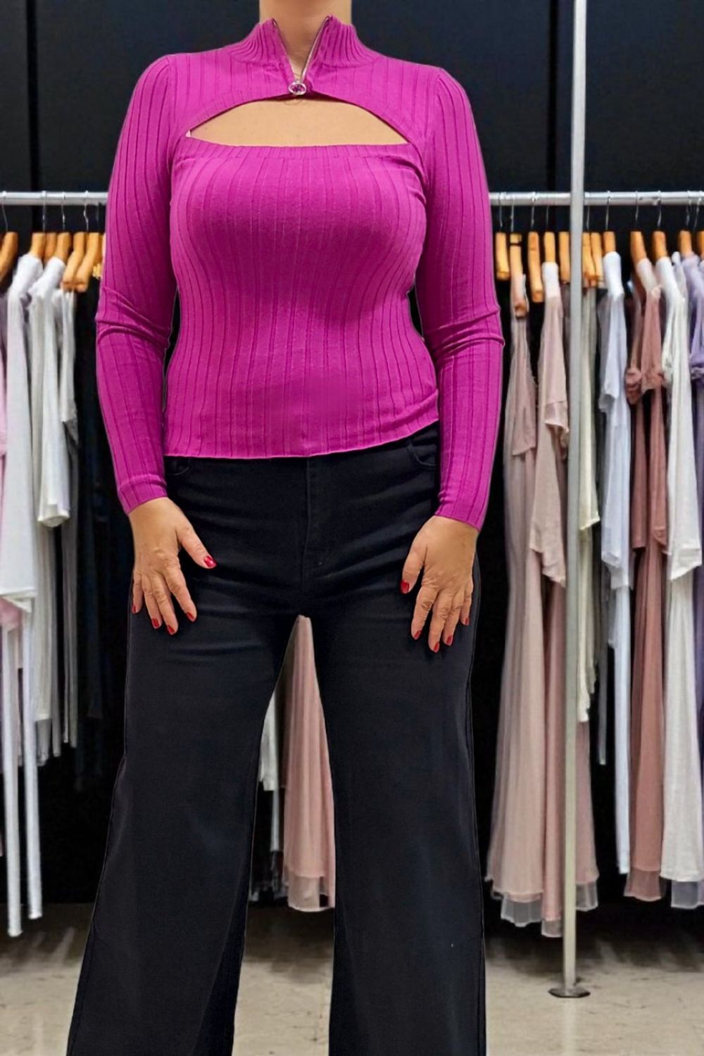 ΜΠΛΟΥΖΑ ΣΕ ΛΕΠΤΟ ΠΛΕΚΤΟ ΥΦΑΣΜΑ ΜΕ ΑΝΑΓΛΥΦΗ ΡΙΜΠ ΥΦΗ,ΣΕ ΕΦΑΡΜΟΣΤΗ ΓΡΑΜΜΗ.ΔΙΑΘΕΤΕΙ ΕΝΤΥΠΩΣΙΑΚΟ ΑΝΟΙΓΜΑ ΣΤΟ ΣΤΗΘΟΣ ΚΑΙ ΨΗΛΟ ΓΙΑΚΑ ΜΕ ΦΕΡΜΟΥΑΡ.ΜΟΝΤΕΡΝΑ ΚΑΙ ΘΗΛΥΚΗ ΕΠΙΛΟΓΗ,ΙΔΑΝΙΚΗ ΓΙΑ ΚΟΜΨΕΣ CASUAL H’ ΒΡΑΔΙΝΕΣ ΕΜΦΑΝΙΣΕΙΣ.ΣΥΝΘΕΣΗ 50% VISCOSE 30% POLYESTER 20% POLYAMIDE.
