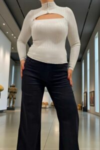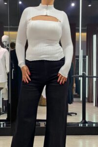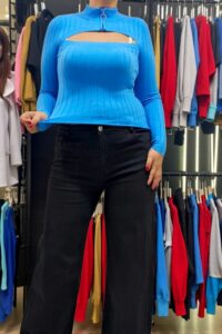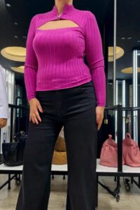 ΜΠΛΟΥΖΑ ΣΕ ΛΕΠΤΟ ΠΛΕΚΤΟ ΥΦΑΣΜΑ ΜΕ ΑΝΑΓΛΥΦΗ ΡΙΜΠ ΥΦΗ,ΣΕ ΕΦΑΡΜΟΣΤΗ ΓΡΑΜΜΗ.ΔΙΑΘΕΤΕΙ ΕΝΤΥΠΩΣΙΑΚΟ ΑΝΟΙΓΜΑ ΣΤΟ ΣΤΗΘΟΣ ΚΑΙ ΨΗΛΟ ΓΙΑΚΑ ΜΕ ΦΕΡΜΟΥΑΡ.ΜΟΝΤΕΡΝΑ ΚΑΙ ΘΗΛΥΚΗ ΕΠΙΛΟΓΗ,ΙΔΑΝΙΚΗ ΓΙΑ ΚΟΜΨΕΣ CASUAL H’ ΒΡΑΔΙΝΕΣ ΕΜΦΑΝΙΣΕΙΣ.ΣΥΝΘΕΣΗ 50% VISCOSE 30% POLYESTER 20% POLYAMIDE.