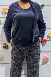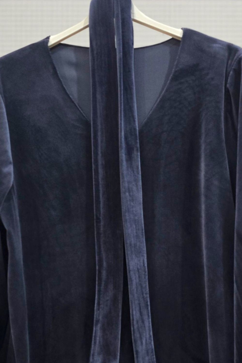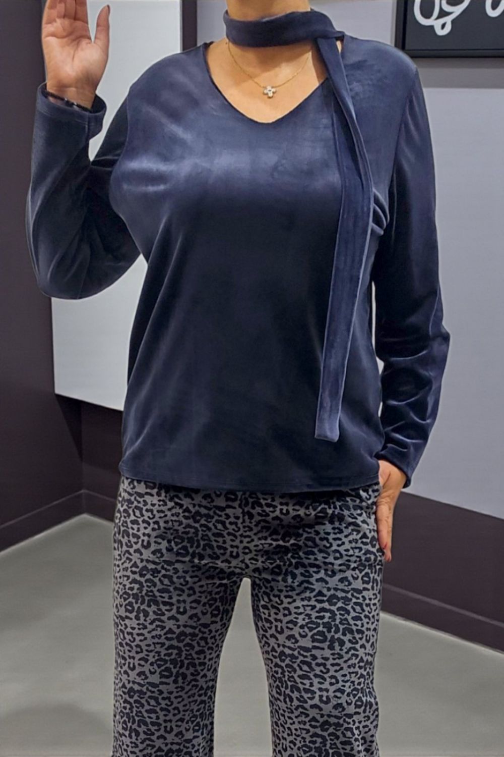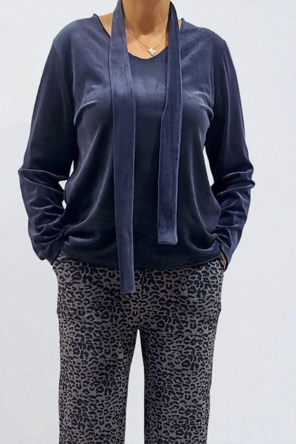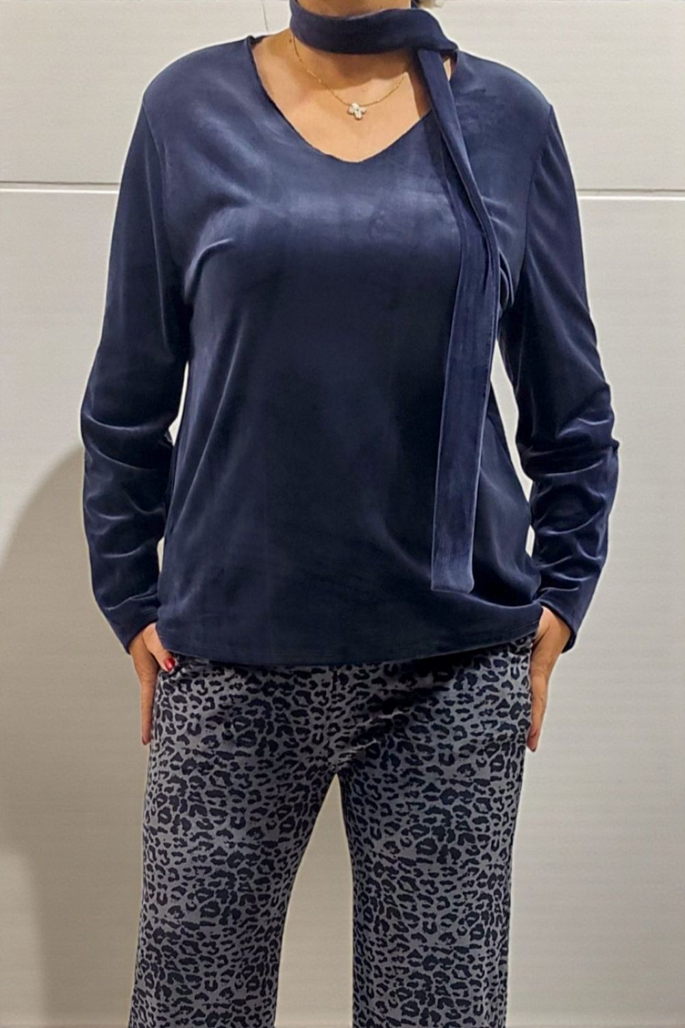 ΕΝΤΥΠΩΣΙΑΚΗ ΒΕΛΟΥΔΙΝΗ ΜΠΛΟΥΖΑ ΜΕ ΑΠΑΛΗ ΥΦΗ ΚΑΙ ΚΟΜΨΗ V ΛΑΙΜΟΚΟΨΗ . ΣΥΝΟΔΕΥΕΤΑΙ ΑΠΟ ΒΕΛΟΥΔΙΝΟ ΦΟΥΛΑΡΙ ΣΤΟ ΙΔΙΟ ΥΦΑΣΜΑ ΓΙΑ ΟΛΟΚΛΗΡΩΜΕΝΟ ELEGANT LOOK. ΣΥΝΘΕΣΗ 60% VISCOSE 35% POLYESTER 5% ELASTIN