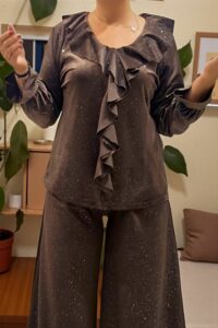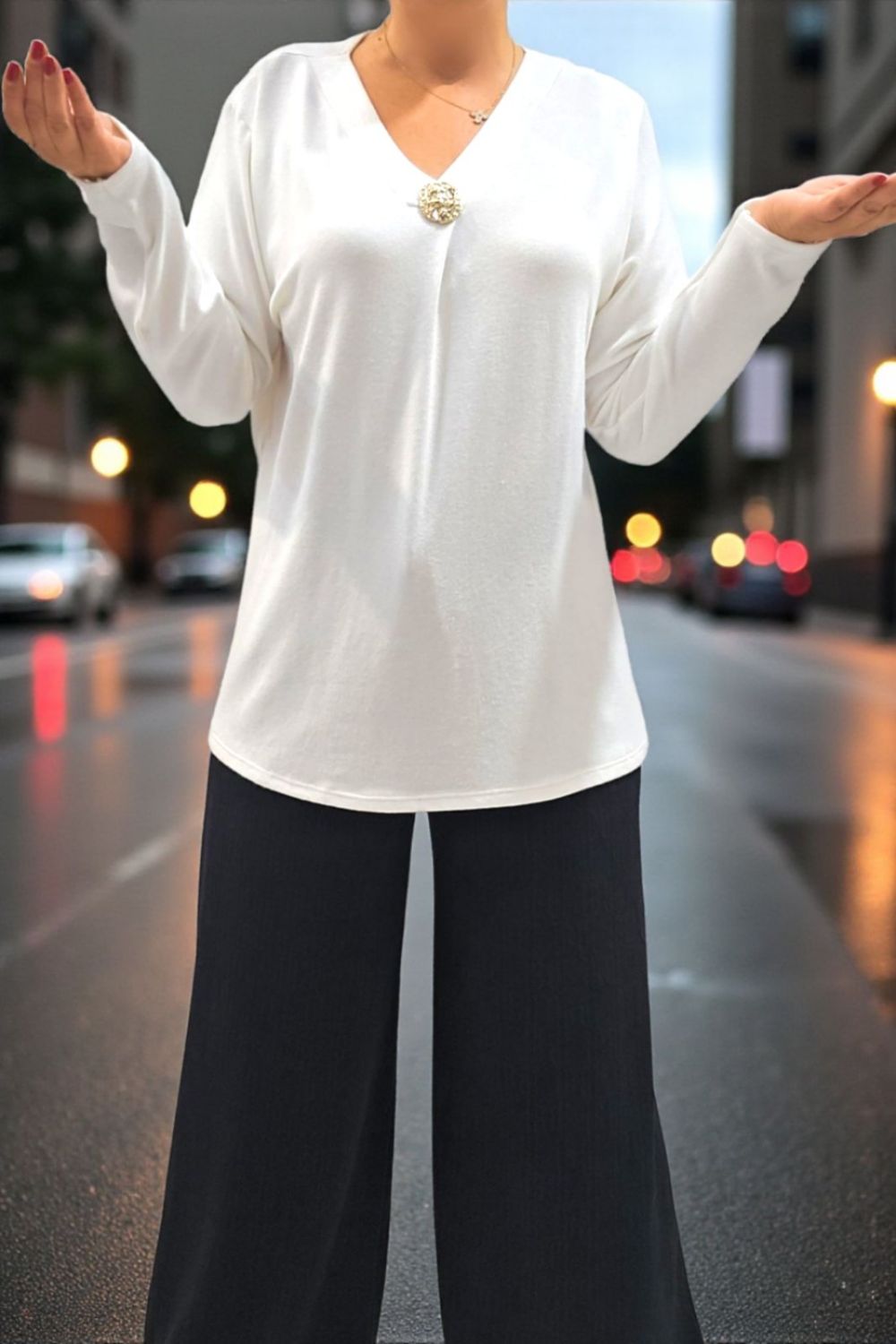 ΜΠΛΟΥΖΑ ΒΕΛΟΥΤΕ ΜΕ ΔΙΑΚΡΙΤΙΚΗ ΑΣΗΜΟΣΚΟΝΗ ΠΟΥ ΧΑΡΙΖEI ΛΑΜΨΗ ΚΑΙ ΚΟΜΨΟΤΗΤΑ . ΔΙΑΘΕΤΕΙ V ΛΑΙΜΟΚΟΨΗ ΚΑΙ ΕΝΤΥΠΩΣΙΑΚΟ ΦΡΑΜΠΑΛΑ ΣΧΕΔΙΟ ΠΟΥ ΦΤΑΝΕΙ ΜΕΧΡΙ ΤΟ ΤΕΛΕΙΩΜΑ ΤΗΣ ΜΠΛΟΥΖΑΣ , ΠΡΟΣΦΕΡΟΝΤΑΣ ΜΟΝΑΔΙΚΟ ΣΤΥΛ ΚΑΙ ΘΗΛΥΚΟΤΗΤΑ . ΙΔΑΝΙΚΗ ΕΠΙΛΟΓΗ ΓΙΑ ΒΡΑΔΙΝΕΣ ΕΞΟΔΟΥΣ . ΣΥΝΘΕΣΗ 60% VISCOSE 30% POLYESTER 5% ELASTIN