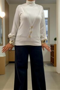 ΑΝΑΝΕΩΣΤΕ ΤΟ ΣΤΥΛ ΣΑΣ ΜΕ ΑΥΤΗ ΤΗΝ ΠΛΕΚΤΗ ΜΠΛΟΥΖΑ . ΔΙΑΘΕΤΕΙ ΙΔΙΑΙΤΕΡΟ V ΣΧΕΔΙΟ ΜΕ ΔΙΑΚΟΣΜΗΤΙΚΑ ΧΡΥΣΑ ΚΟΥΜΠΙΑ ΠΟΥ ΠΡΟΣΘΕΤΟΥΝ ΚΟΜΨΟΤΗΤΑ ΕΝΩ ΟΙ ΛΕΠΤΟΜΕΡΕΙΕΣ ΑΠΟ ΑΣΗΜΙΟΚΛΩΣΤΗ ΔΙΝΟΥΝ ΔΙΑΚΡΙΤΙΚΗ ΛΑΜΨΗ. ΙΔΑΝΙΚΗ ΕΠΙΛΟΓΗ ΓΙΑ ΚΑΘΗΜΕΡΙΝΕΣ ΕΜΦΑΝΙΣΕΙΣ. ΣΥΝΘΕΣΗ 35% VISCOSE 30% POLYAMIDE 25% MODAL 10% ELASTIN