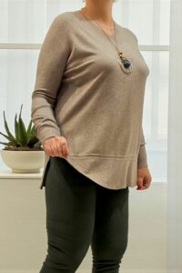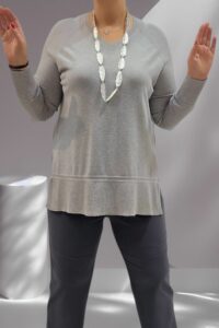 ΚΟΜΨΗ ΜΠΛΟΥΖΑ ΑΠΟ ΑΠΑΛΟ ΠΛΕΚΤΟ ΜΕ V ΛΑΙΜΟΚΟΨΗ ΠΟΥ ΧΑΡΙΖΕΙ ΘΗΛΥΚΟΤΗΤΑ . ΤΑ ΣΚΙΣΙΜΑΤΑ ΣΤΑ ΠΛΑΪΝΑ ΧΑΡΙΖΟΥΝ ΕΛΕΥΘΕΡΙΑ ΚΙΝΗΣΕΩΝ ΚΑΙ ΑΝΕΤΗ ΕΦΑΡΜΟΓΗ , ΕΝΩ ΠΡΟΣΔΙΔΟΥΝ ΜΟΝΤΕΡΝΑ ΔΙΑΘΕΣΗ . ΣΥΝΘΕΣΗ 65% COTTON 35% POLYESTER