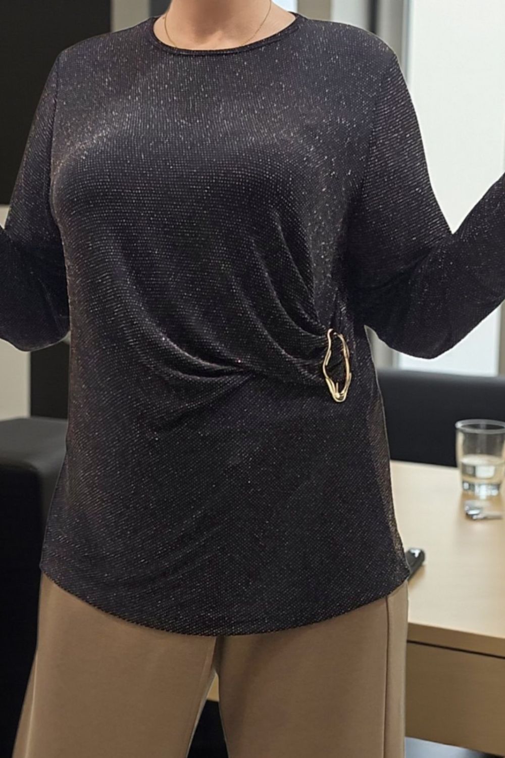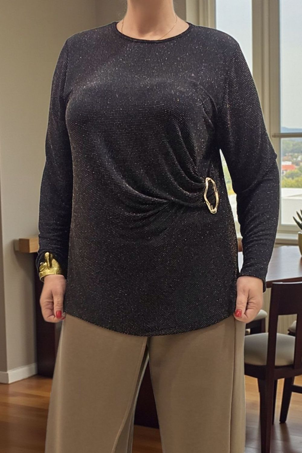 ΕΝΤΥΠΩΣΙΑΚΗ ΜΠΛΟΥΖΑ ΑΠΟ ΥΦΑΣΜΑ ΛΟΥΡΕΞ,ΜΕ ΔΙΑΚΡΙΤΙΚΗ ΛΑΜΨΗ ΠΟΥ ΑΝΑΔΕΙΚΝΥΕΙ ΤΗ ΘΗΛΥΚΟΤΗΤΑ ΚΑΙ ΤΟ ΣΤΥΛ.ΔΙΑΘΕΤΕΙ ΧΡΥΣΗ ΤΟΚΑ ΣΤΟ ΠΛΑΪ,ΠΟΥ ΔΗΜΙΟΥΡΓΕΙ ΟΜΟΡΦΗ ΣΟΥΡΑ,ΧΑΡΙΖΟΝΤΑΣ ΚΟΛΑΚΕΥΤΙΚΗ ΕΦΑΡΜΟΓΗ ΣΤΟ ΣΩΜΑ.ΙΔΑΝΙΚΗ ΕΠΙΛΟΓΗ ΓΙΑ ΚΑΘΕ ΠΕΡΙΣΤΑΣΗ ΠΟΥ ΘΕΛΕΤΕ ΝΑ ΞΕΧΩΡΙΣΕΤΕ ΜΕ ΕΝΑ CHIC ΚΑΙ ΛΑΜΠΕΡΟ LOOK.ΣΥΝΘΕΣΗ 85% NYLON 10% METALLIC 5% ELASTIN.