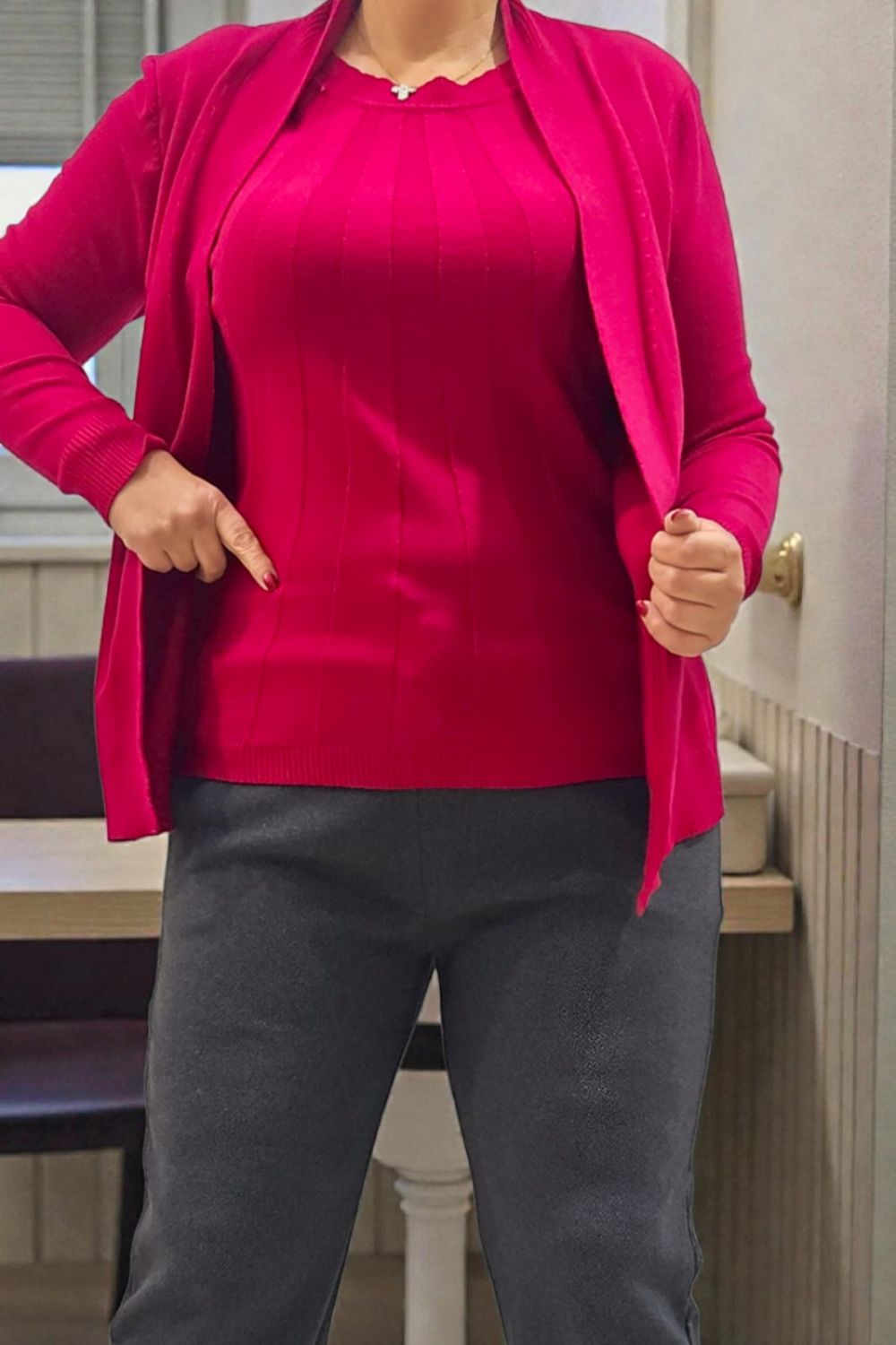ΚΟΜΨΗ ΜΠΛΟΥΖΟΖΑΚΕΤΑ ΠΟΥ ΣΥΝΔΥΑΖΕΙ ΑΝΕΣΗ ΚΑΙ ΣΤΥΛ.ΚΑΤΑΣΚΕΥΑΣΜΕΝΗ ΑΠΟ ΑΠΑΛΟ ΠΛΕΚΤΟ ΥΦΑΣΜΑ ΜΕ ΔΙΑΚΡΙΤΙΚΗ RIB ΥΦΗ ΠΟΥ ΑΓΚΑΛΙΑΖΕΙ ΤΟ ΣΩΜΑ ΧΩΡΙΣ ΝΑ ΠΕΡΙΟΡΙΖΕΙ ΤΗΝ ΚΙΝΗΣΗ.ΤΟ ΑΝΟΙΧΤΟ ΜΠΡΟΣΤΙΝΟ ΜΕΡΟΣ ΠΡΟΣΔΙΔΕΙ ΚΟΜΨΟΤΗΤΑ ΚΑΙ ΕΥΕΛΙΞΙΑ,ΕΠΙΤΡΕΠΟΝΤΑΣ ΕΥΚΟΛΟΥΣ ΣΥΝΔΥΣΜΟΥΣ ΑΠΟ ΤΟ ΠΡΩΙ ΩΣ ΤΟ ΒΡΑΔΥ.ΙΔΑΝΙΚΗ ΕΠΙΛΟΓΗ ΓΙΑ CASUAL CHIC LOOKS.ΣΥΝΘΕΣΗ 35% VISCOSE 30% POLYESTER 25% MODA10% ELASTIN