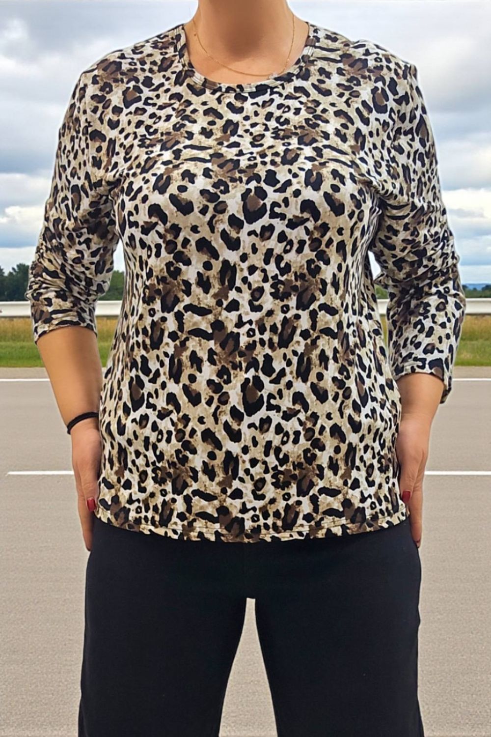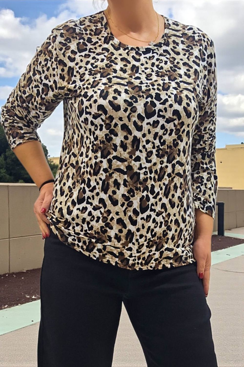 ΚΟΜΨΗ ΚΑΙ ΔΙΑΧΡΟΝΙΚΗ ΜΠΛΟΥΖΑ ΜΕ ΕΝΤΥΠΩΣΙΑΚΟ ANIMAL PRINT ΜΟΤΙΒΟ ΠΟΥ ΠΡΟΣΘΕΤΕΙ ΔΥΝΑΜΙΚΟ ΧΑΡΑΚΤΗΡΑ ΣΕ ΚΑΘΕ ΕΜΦΑΝΙΣΗ ΚΑΙ ΦΟΡΙΕΤΑΙ ΕΥΚΟΛΑ ΑΠΟ ΤΟ ΠΡΩΙ ΕΩΣ ΤΟ ΒΡΑΔΥ . ΔΙΑΘΕΤΕΙ ΣΤΡΟΓΓΥΛΗ ΛΑΙΜΟΚΟΨΗ , ΕΝΩ ΤΟ ΑΠΑΛΟ ΚΑΙ ΕΛΑΣΤΙΚΟ ΥΦΑΣΜΑ ΠΡΟΣΦΕΡΕΙ ΑΝΕΣΗ ΚΑΙ ΣΩΣΤΗ ΕΦΑΡΜΟΓΗ .ΣΥΝΘΕΣΗ 65% ACRYLIC 30% COTTON 5% ELASTIN