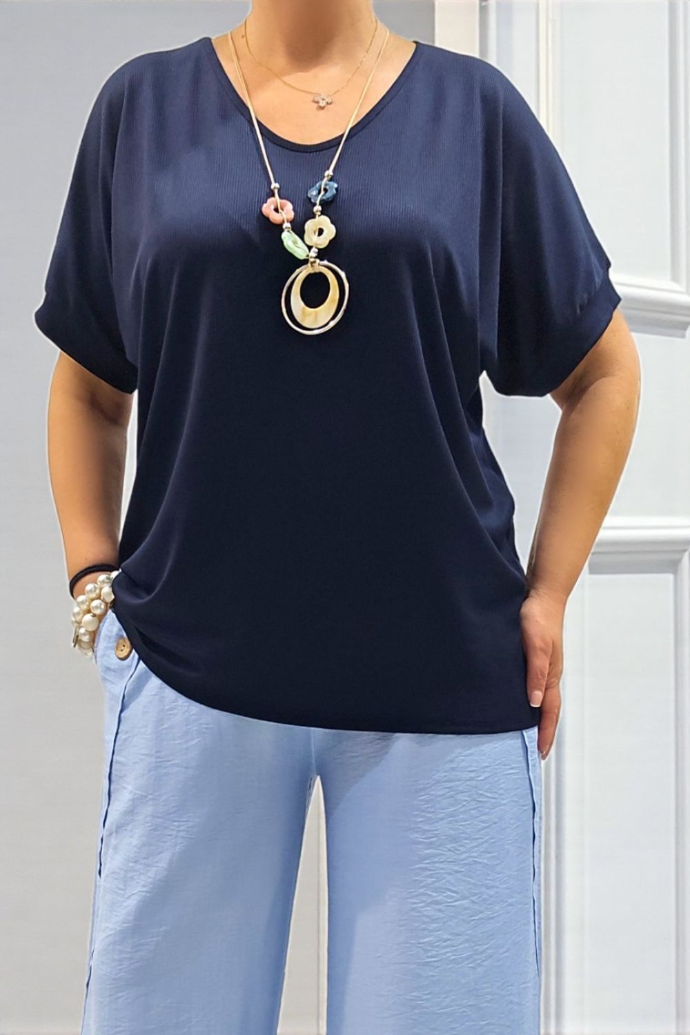 ΚΟΜΨΗ ΜΠΛΟΥΖΑ ΜΑΖΙ ΜΕ ΚΟΛΙΕ.ΚΑΤΑΣΚΕΥΑΣΜΕΝΗ ΑΠΟ ΧΥΤΟ ΚΑΙ ΑΝΑΛΑΦΡΟ ΥΦΑΣΜΑ ΠΟΥ ΧΑΡΙΖΕΙ ΑΝΕΣΗ ΚΑΙΙ ΕΛΕΥΘΕΡΙΑ ΚΙΝΗΣΕΩΝ.ΔΙΑΘΕΤΕΙ ΛΑΙΜΟΚΟΨΗ ΤΥΠΟΥ V,ΠΟΥ ΠΡΟΣΦΕΡΕΙ ΘΗΛΥΚΟΤΗΤΑ ΚΑΙ ΔΙΑΧΡΟΝΙΚΟ ΣΤΥΛ,ΕΝΩ Η ΡΙΠ ΥΦΑΝΣΗ ΠΡΟΣΘΕΤΕΙ ΑΠΑΛΗ ΚΑΙ ΙΣΟΡΡΟΠΗΜΕΝΗ ΑΙΣΘΗΤΙΚΗ.ΙΔΑΝΙΚΗ ΓΙΑ ΚΑΘΕ ΠΕΡΙΣΤΑΣΗ.ΣΥΝΘΕΣΗ 95% VISCOSE 5% ELASTIN.