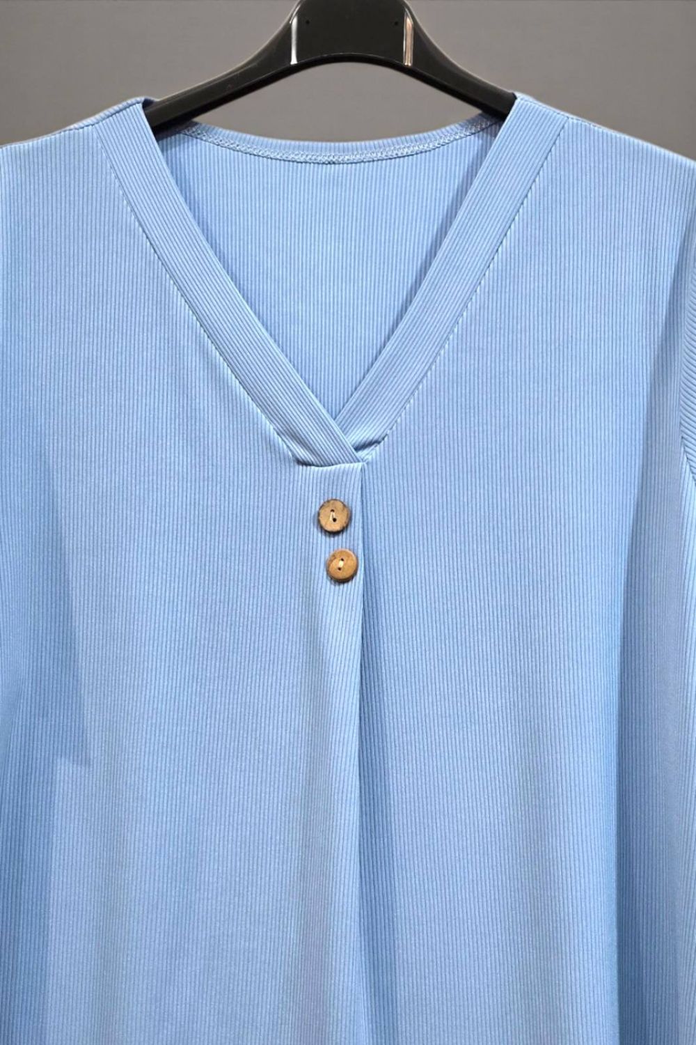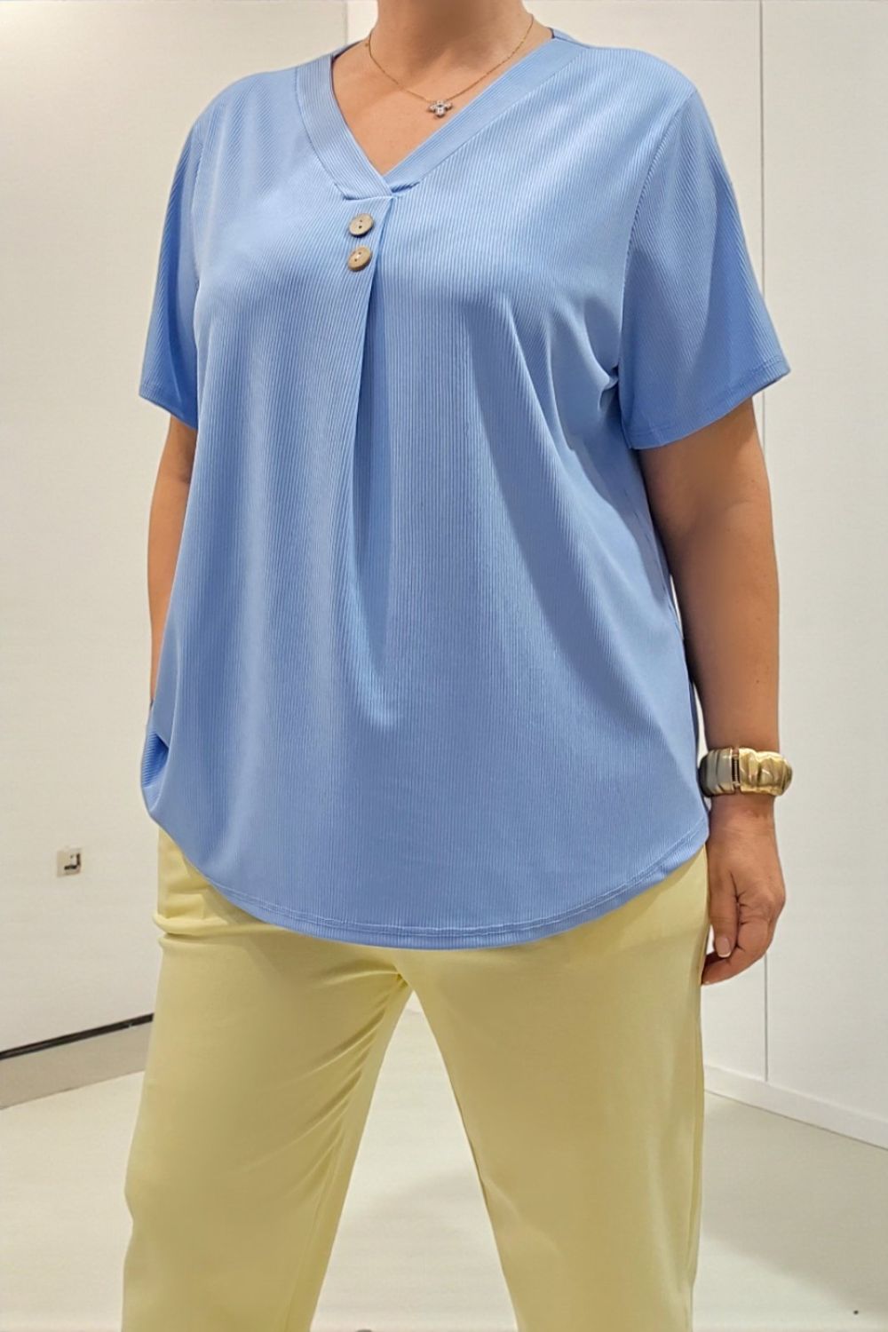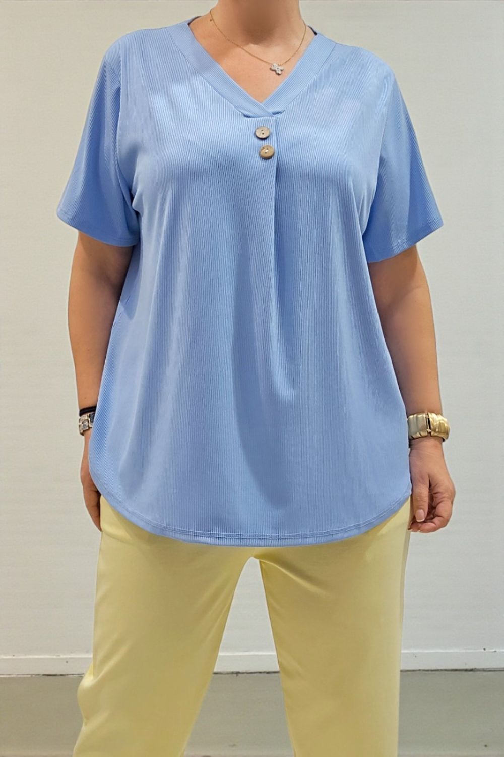 ΚΟΜΨΗ ΚΑΙ ΑΝΕΤΗ ΜΠΛΟΥΖΑ ,ΚΑΤΑΣΚΕΥΑΣΜΕΝΗ ΑΠΟ ΑΠΑΛΟ ΡΙΠ ΥΦΑΣΜΑ ΠΟΥ ΑΓΚΑΛΙΑΖΕΙ ΟΜΟΡΦΑ ΤΟ ΣΩΜΑ, ΠΡΟΣΦΕΡΟΝΤΑΣ ΕΥΕΛΙΞΙΑ ΚΙΝΗΣΗΣ ΚΑΘ’ ΟΛΗ ΤΗ ΔΙΑΡΚΕΙΑ ΤΗΣ ΜΕΡΑΣ.ΔΙΑΘΕΤΕΙ ΝΤΕΚΟΛΤΕ ΣΕ ΣΧΗΜΑ V ΜΠΡΟΣΤΑ, ΚΑΙ ΜΙΑ ΔΙΑΚΡΙΤΙΚΗ ΠΙΕΤΑ ΚΑΤΩ ΑΠΟ ΤΟ V,ΠΟΥ ΠΡΟΣΔΙΔΕΙ ΜΙΑ ΠΙΝΕΛΙΑ ΚΟΜΨΟΤΗΤΑΣ.ΙΔΑΝΙΚΗ ΓΙΑ ΚΑΘΗΜΕΡΙΝΕΣ ΚΑΘΩΣ ΚΑΙ ΓΙΑ ΠΙΟ ΠΡΟΣΕΓΜΕΝΕΣ ΕΜΦΑΝΙΣΕΙΣ.ΣΥΝΘΕΣΗ 65% VISCOSE 30% POLYESTER 5% ELASTAN