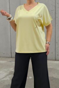 ΑΝΕΤΗ ΜΠΛΟΥΖΑ ΑΠΟ ΧΥΤΟ ΚΑΙ ΑΝΑΛΑΦΡΟ ΥΦΑΣΜΑ .ΔΙΑΘΕΤΕΙ V ΛΑΙΜΟΚΟΨΗ ΠΟΥ ΚΟΛΑΚΕΥΕΙ ΤΟ ΝΤΕΚΟΛΤΕ ΚΑΙ ΑΝΕΤΗ ΙΣΙΑ ΓΡΑΜΜΗ ΓΙΑ ΧΑΛΑΡΗ ΕΦΑΡΜΟΓΗ . ΤΟ ΔΙΑΚΡΙΤΙΚΟ ΣΧΕΔΙΟ ΠΡΟΣΘΕΤΕΙ ΙΔΙΑΙΤΕΤΟ ΧΑΡΑΚΤΗΡΑ ΚΑΙ ΘΗΛΥΚΗ ΠΙΝΕΛΙΑ . ΙΔΑΝΙΚΗ ΕΠΙΛΟΓΗ ΓΙΑ ΚΑΘΗΜΕΡΙΝΕΣ ΕΜΦΑΝΙΣΕΙΣ . ΣΥΝΘΕΣΗ 95% VISCOSE 5% ELASTIN