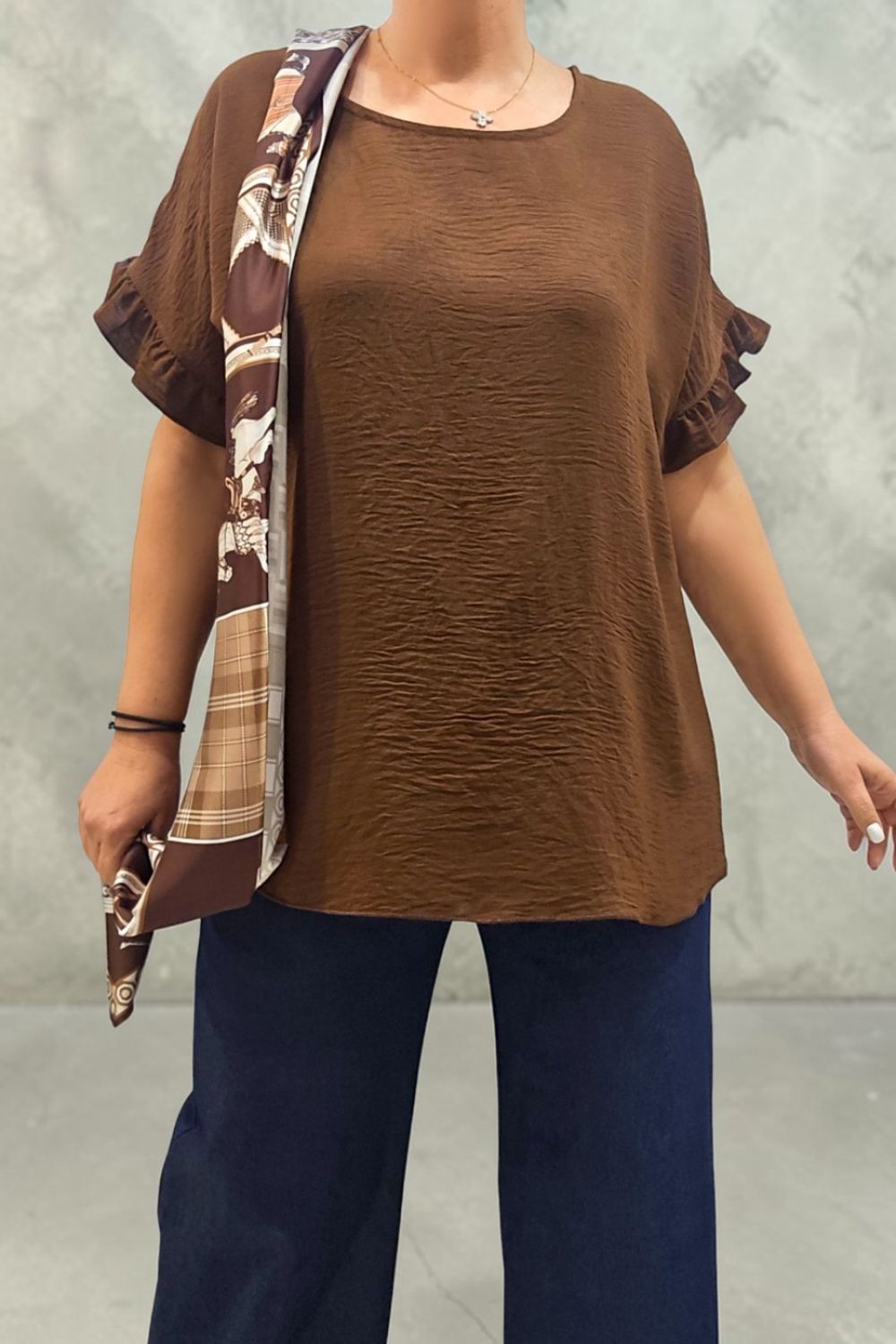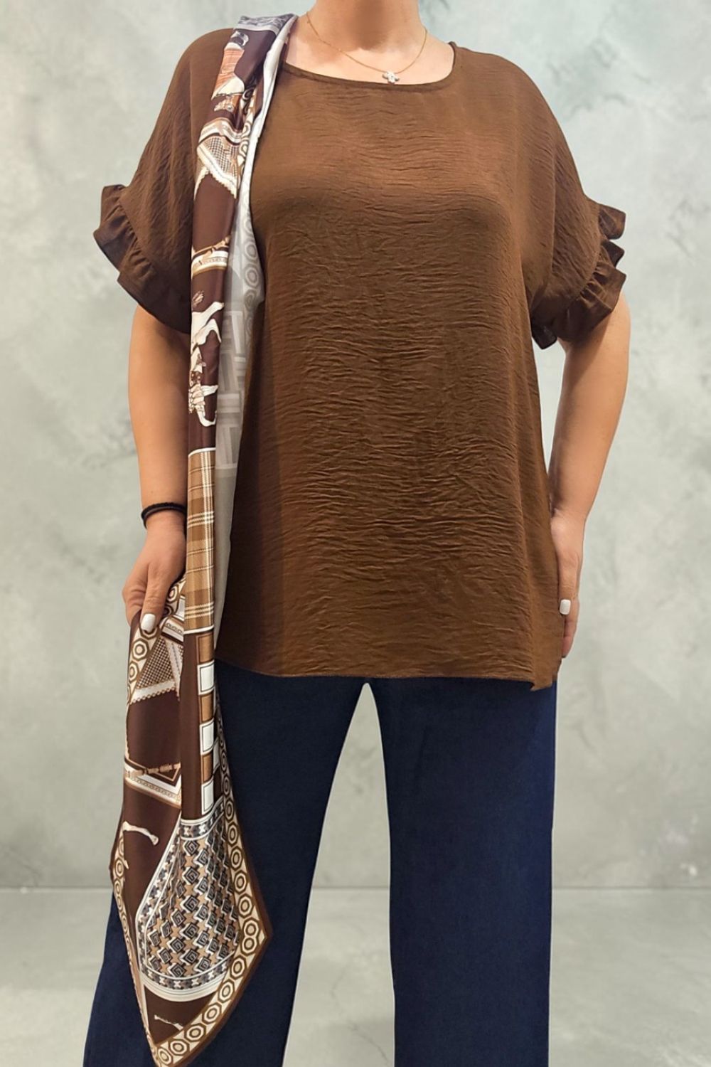 ΥΠΕΡΟΧΗ ΜΠΛΟΥΖΑ ΣΕ ΑΝΕΤΗ ΓΡΑΜΜΗ,ΣΧΕΔΙΑΣΜΕΝΗ ΓΙΑ ΚΑΘΗΜΕΡΙΝΗ ΚΟΜΨΟΤΗΤΑ ΚΑΙ ΑΝΕΣΗ.ΔΙΑΘΕΤΕΙ ΣΤΡΟΓΓΥΛΗ ΛΑΙΜΟΚΟΨΗ ΚΑΙ ΜΑΝΙΚΙΑ ΜΕ ΔΙΑΚΡΙΤΙΚΟ ΒΟΛΑΝ ΠΟΥ ΠΡΟΣΘΕΤΕΙ ΜΙΑ ΘΗΛΥΚΗ ΚΑΙ ΜΟΝΤΕΡΝΑ ΠΙΝΕΛΙΑ.ΣΥΝΟΔΕΥΕΤΑΙ ΑΠΟ ΕΝΤΥΠΩΣΙΑΚΟ ΦΟΥΛΑΡΙ ΠΟΥ ΟΛΟΚΛΗΡΩΝΕΙ ΤΟ LOOK ΚΑΙ ΤΗΝ ΚΑΘΙΣΤΑ ΙΔΑΝΙΚΗ ΕΠΙΛΟΓΗ ΓΙΑ CHIC ΕΜΦΑΝΙΣΕΙΣ ΑΠΟ ΤΟ ΠΡΩΙ ΩΣ ΤΟ ΒΡΑΔΥ.ΣΥΝΘΕΣΗ 95% VISCOSE 5% ELASTIN.
