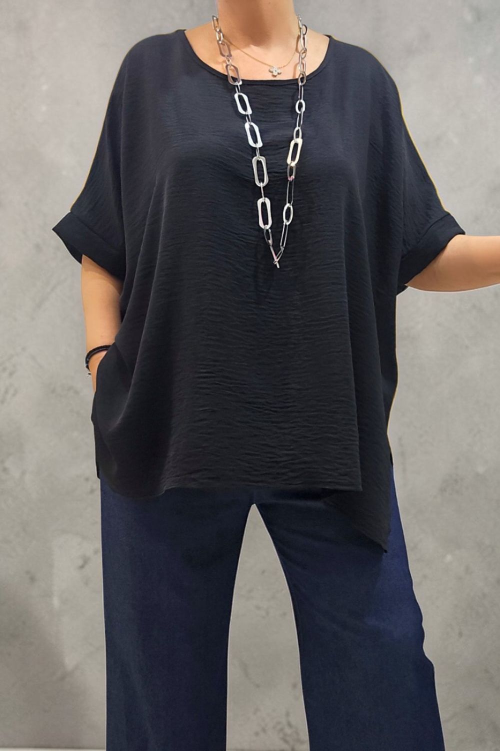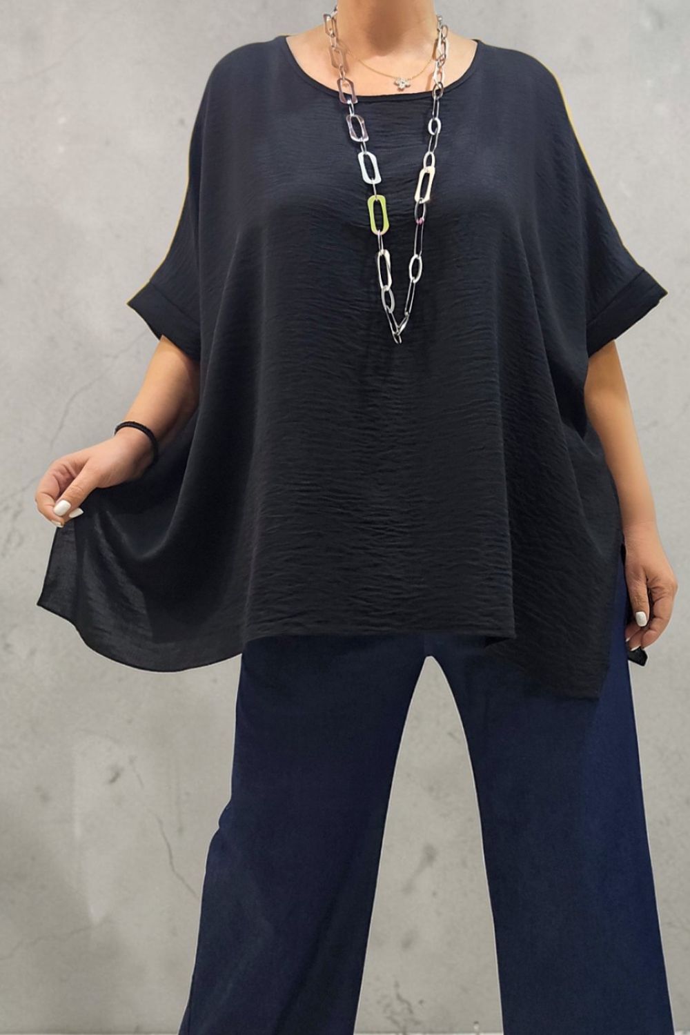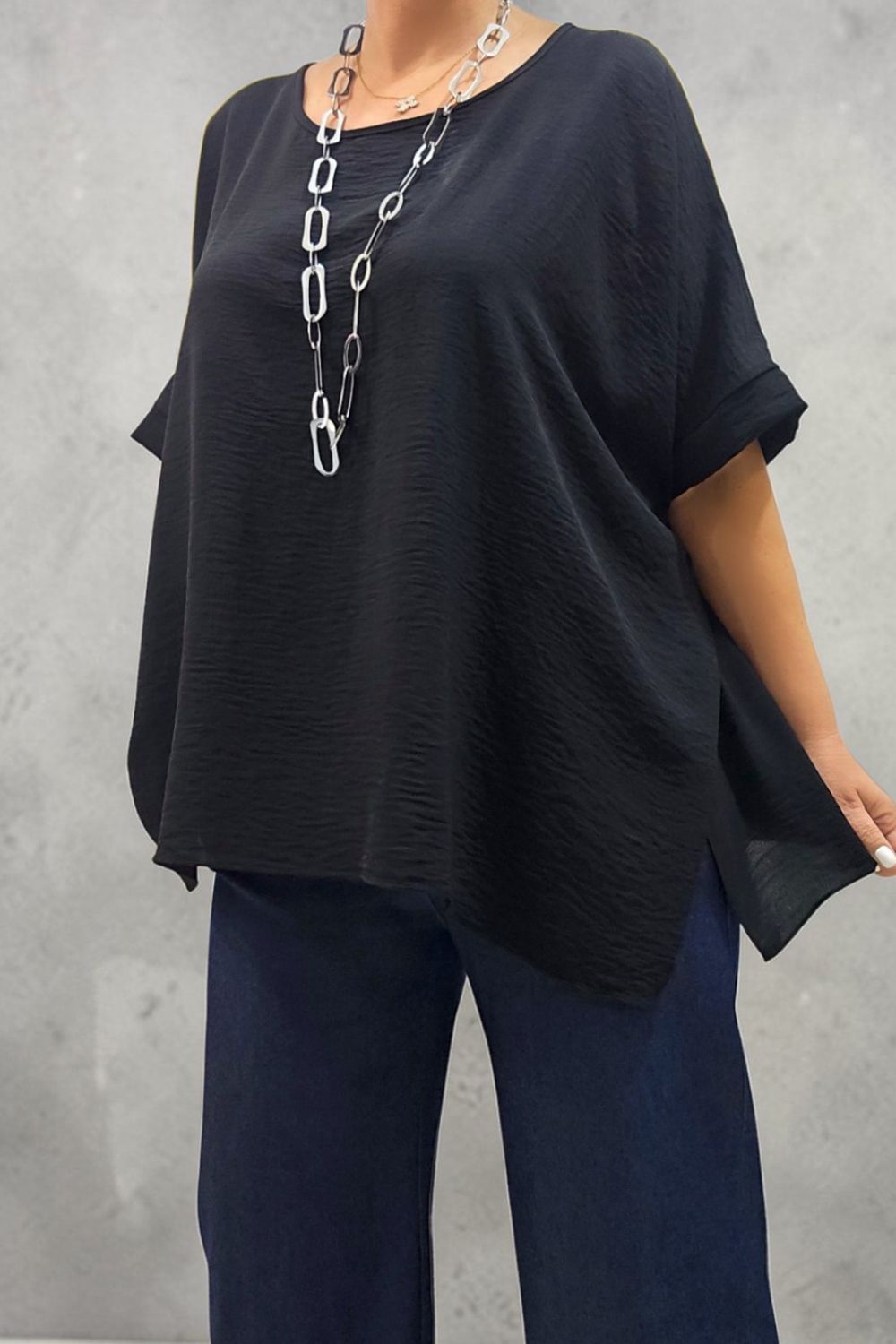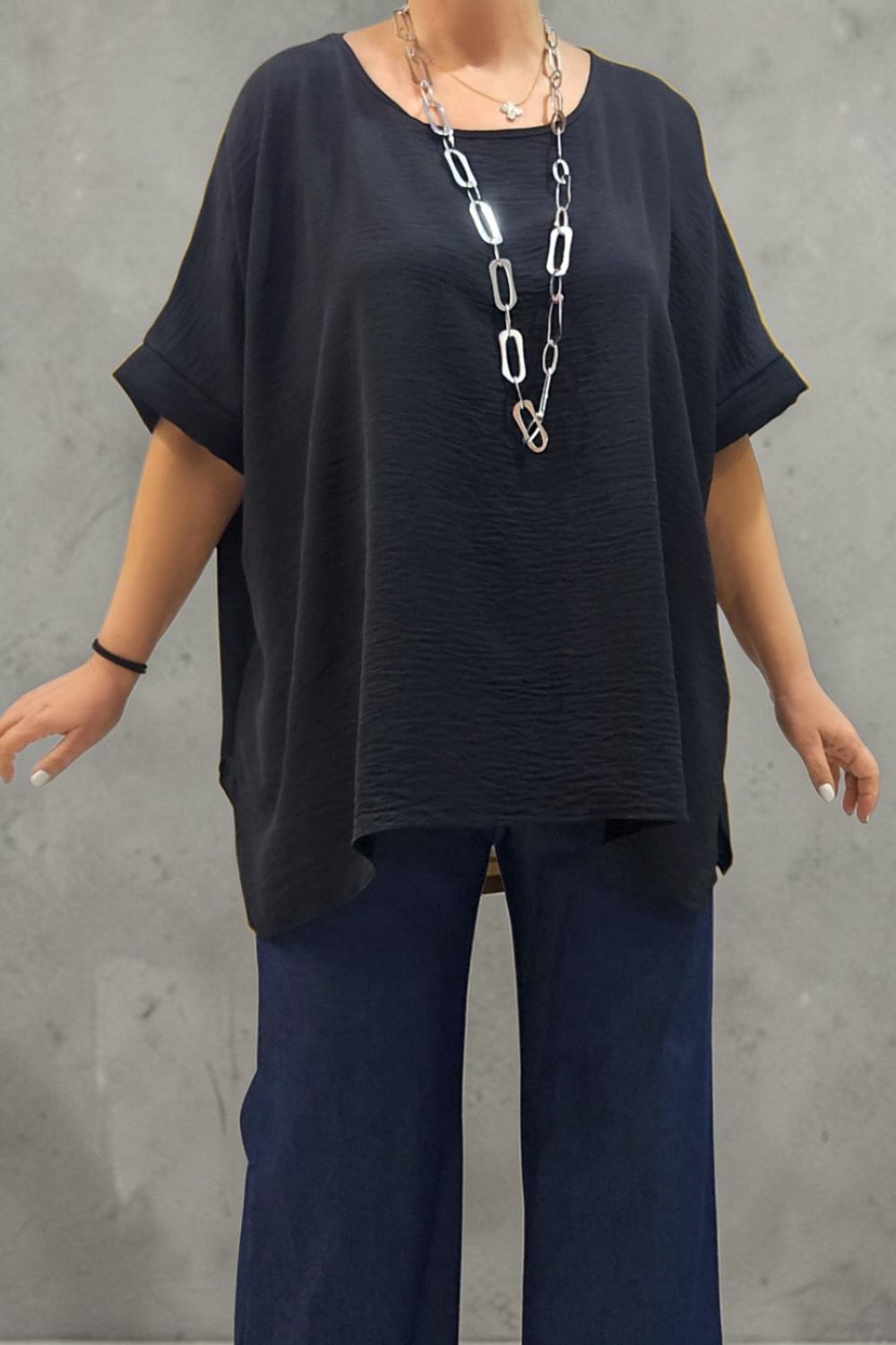 ΚΟΜΨΗ ΜΠΛΟΥΖΑ PLUS SIZE,ΚΑΤΑΣΚΕΥΑΣΜΕΝΗ ΑΠΟ ΧΥΤΟ ΥΦΑΣΜΑ ΠΟΥ ΧΑΡΙΖΕΙ ΕΞΑΙΡΕΤΙΚΗ ΑΙΣΘΗΣΗ ΚΑΙ ΕΛΕΥΘΕΡΙΑ ΚΙΝΗΣΕΩΝ.ΔΙΑΘΕΤΕΙ ΑΝΟΙΧΤΗ ΛΑΙΜΟΚΟΨΗ ΚΑΙ ΜΑΝΙΚΙΑ ΜΕ ΧΑΜΗΛΗ ΡΑΦΗ ΠΟΥ ΔΗΜΙΟΥΡΓΟΥΝ ΣΤΑΘΕΡΟ ΡΕΒΕΡ ΣΤΟ ΤΕΛΕΙΩΜΑ.ΤΑ ΠΛΑΙΝΑ ΣΚΙΣΙΜΑΤΑ ΕΞΑΣΦΑΛΙΖΟΥΝ ΤΕΛΕΙΑ ΕΦΑΡΜΟΓΗ ΣΤΟ ΥΨΟΣ ΤΩΝ ΓΟΦΩΝ ΠΡΟΣΦΕΡΟΝΤΑΣ ΜΙΑ ΑΝΕΤΗ,RELAXED ΓΡΑΜΜΗ..ΙΔΑΝΙΚΗ ΓΙΑ CASUAL CHIC ΕΜΦΑΝΙΣΕΙΣ ΚΑΘ ΟΛΗ ΤΗ ΔΙΑΡΚΕΙΑ ΤΗΣ ΜΕΡΑΣ.ΣΥΝΘΕΣΗ 60% POLYESTER345% VISCOSE 5% ELASTIN