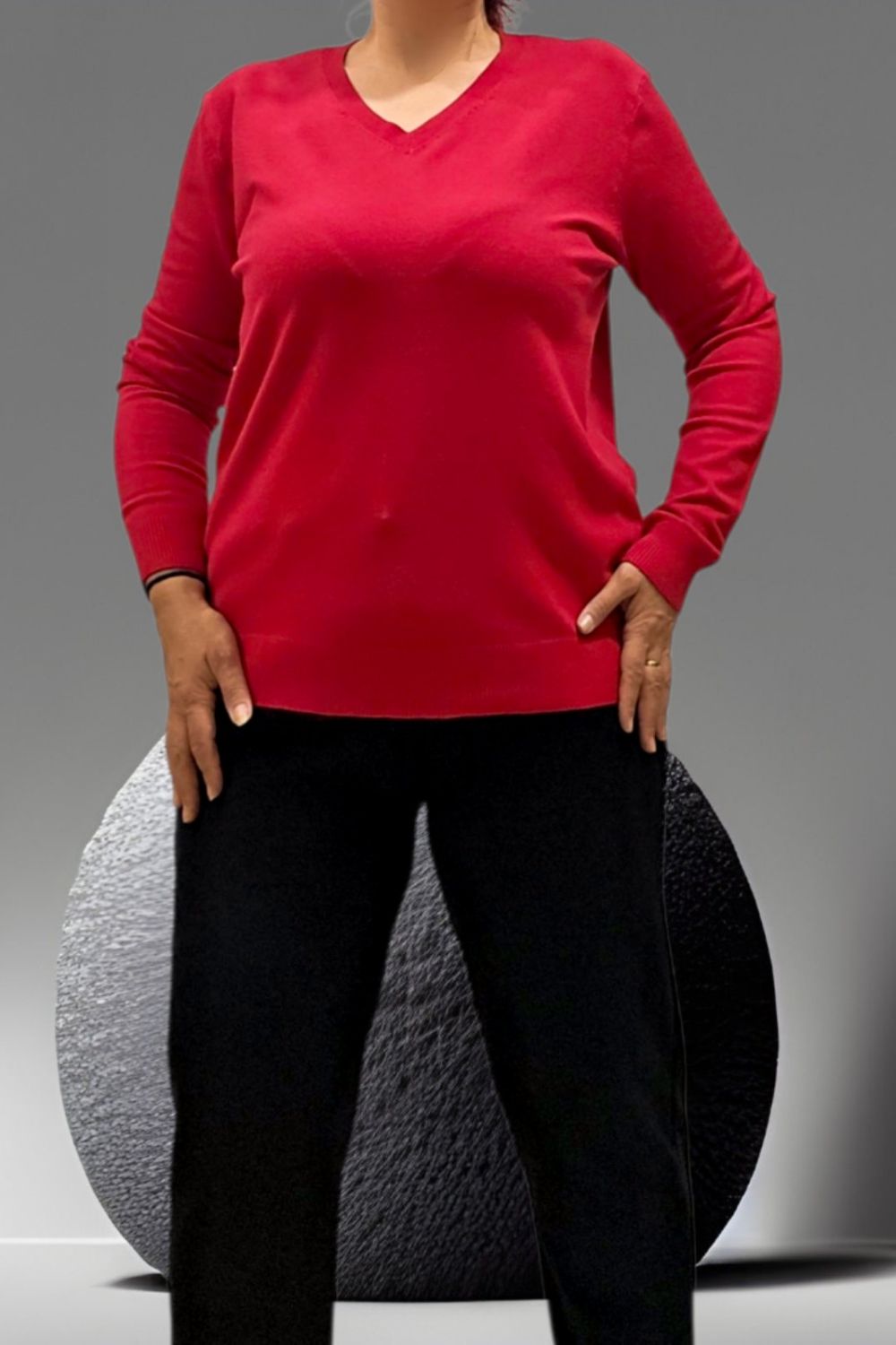ΚΟΜΨΗ ΜΠΛΟΥΖΑ ΑΠΟ ΑΠΑΛΟ ΠΛΕΚΤΟ ΜΕ V ΛΑΙΜΟΚΟΨΗ . ΙΔΑΝΙΚΗ ΓΙΑ ΚΑΘΗΜΕΡΙΝΕΣ ΕΜΦΑΝΙΣΕΙΣ . ΣΥΝΘΕΣΗ 35% VISCOSE 30% POLYAMIDE 25% MODAL 10% ELASTIN