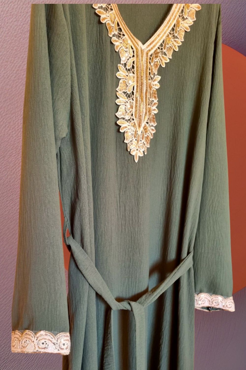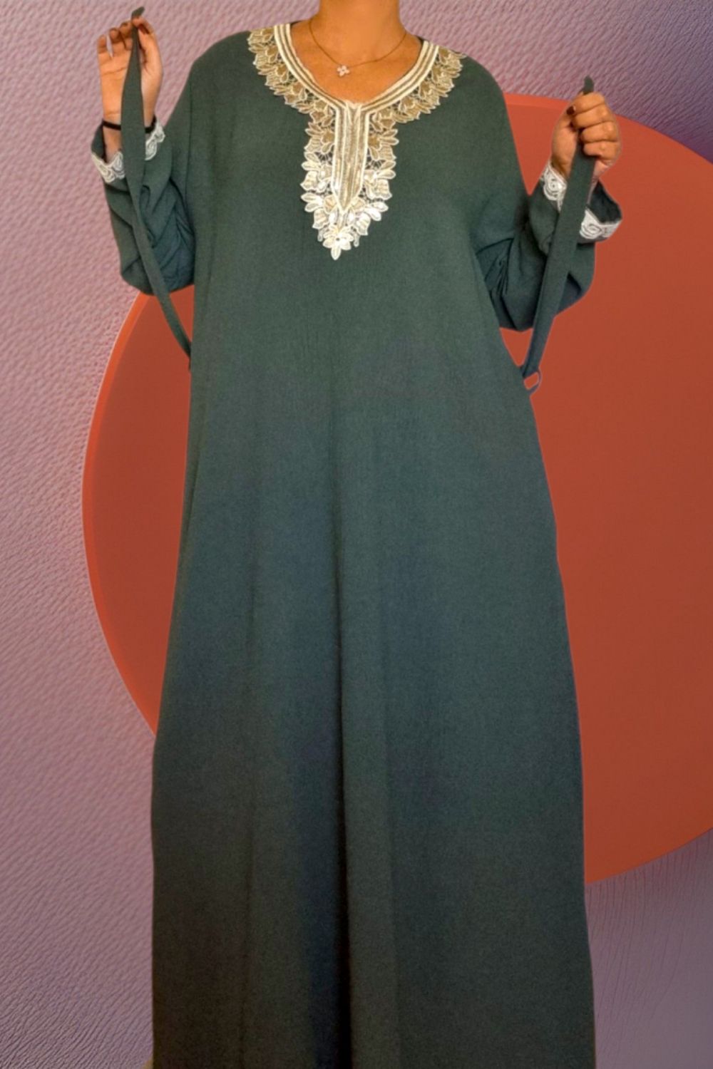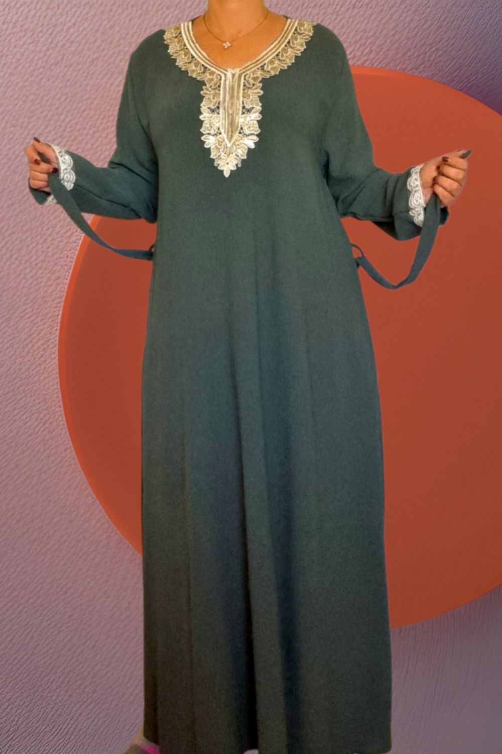 ΦΟΡΕΜΑ ΣΕ ΧΥΤΟ ΥΦΑΣΜΑ ΜΕ ΕΝΤΥΠΩΣΙΑΚΟ V ΝΤΕΚΟΛΤΕ,ΔΙΑΚΟΣΜΗΜΕΝΟ ΜΕ ΧΡΥΣΟ ΣΧΕΔΙΟ ΜΠΡΟΣΤΑ ΠΟΥ ΧΑΡΙΖΕΙ ΛΑΜΨΗ ΚΑΙ ΠΟΛΥΤΕΛΕΙΑ ΚΑΙ ΧΡΥΣΕΣ ΛΕΠΤΟΜΕΡΕΙΣ ΣΤΑ ΜΑΝΙΚΙΑ.ΣΥΝΟΔΕΥΕΤΑΙ ΑΠΟ ΖΩΝΗ ΠΟΥ ΤΟΝΙΖΕΙ ΤΗΝ ΜΕΣΗ.ΙΔΑΝΙΚΟ ΓΙΑ ΚΟΜΨΕΣ ΕΜΦΑΝΙΣΕΙΣ.ΣΥΝΘΕΣΗ 95% POLYESTER 5% ELASTIN.