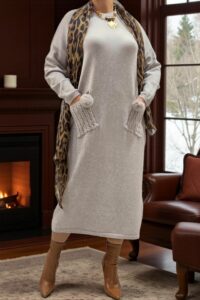 ΦΟΡΕΜΑ ΑΠΟ ΛΕΠΤΟ,ΑΠΑΛΟ ΠΛΕΚΤΟ ΥΦΑΣΜΑ ΣΕ ΧΑΛΑΡΗ ΙΣΙΑ ΓΡΑΜΜΗ ΚΑΙ ΣΤΡΟΓΓΥΛΗ ΛΑΙΜΟΚΟΨΗ.ΔΙΑΘΕΤΕΙ ΔΥΟ ΤΣΕΠΕΣ ΜΠΡΟΣΤΑ ΜΕ ΦΕΡΜΟΥΑΡ ΚΑΙ ΜΕΤΑΛΛΙΚΟΥΣ ΚΡΙΚΟΥΣ.ΟΙ ΤΣΕΠΕΣ ΕΙΝΑΙ ΔΙΑΚΟΣΜΗΜΕΝΕΣ ΜΕ ΦΟΥΝΤΑΚΙΑ ΤΟ ΣΧΕΔΙΟ ΠΡΟΣΔΙΔΕΙ ΘΗΛΥΚΟΤΗΤΑ ΚΑΙ ΚΟΜΨΟΤΗΤΑ,ΕΝΩ ΤΟ ΑΠΑΛΟ ΠΛΕΚΤΟ ΥΦΑΣΜΑ ΚΑΝΕΙ ΤΟ ΦΟΡΕΜΑ ΙΔΑΝΙΚΟ ΓΙΑ ΑΝΕΤΕΣ ΚΑΙ ΣΤΥΛΑΤΕΣ ΕΜΦΑΝΙΣΕΙΣ.ΣΥΝΘΕΣΗ 40% POLYAMIDE 20% VISCOSE 10% POLYESTER 20% MODAL 10% ELASTIN.