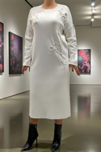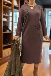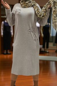 ΦΟΡΕΜΑ ΑΠΟ ΛΕΠΤΟ,ΑΠΑΛΟ ΠΛΕΚΤΟ ΥΦΑΣΜΑ ΣΕ ΧΑΛΑΡΗ ΙΣΙΑ ΓΡΑΜΜΗ ΚΑΙ ΣΤΡΟΓΓΥΛΗ ΛΑΙΜΟΚΟΨΗ.ΜΠΡΟΣΤΑ ΔΙΑΚΟΣΜΕΙΤΑΙ ΜΕ ΑΝΑΓΛΥΦΑ ΣΧΕΔΙΑ ΛΟΥΛΟΥΔΙΩΝ ΦΤΙΑΓΜΕΝΑ ΑΠΟ ΠΛΕΚΤΟ ΚΟΡΔΟΝΙ ΤΟΥ ΙΔΙΟΥ ΥΦΑΣΜΑΤΟΣ.ΤΟ ΣΧΕΔΙΟ ΠΡΟΣΔΙΔΕΙ ΘΗΛΥΚΟΤΗΤΑ ΚΑΙ ΚΟΜΨΟΤΗΤΑ,ΕΝΩ ΤΟ ΑΠΑΛΟ ΠΛΕΚΤΟ ΥΦΑΣΜΑ ΚΑΝΕΙ ΤΟ ΦΟΡΕΜΑ ΙΔΑΝΙΚΟ ΓΙΑ ΑΝΕΤΕΣ ΚΑΙ ΣΤΥΛΑΤΕΣ ΕΜΦΑΝΙΣΕΙΣ.ΣΥΝΘΕΣΗ 40% POLYAMIDE 20% VISCOSE 20% MODAL 10% POLYESTER 10% ELASTIN.