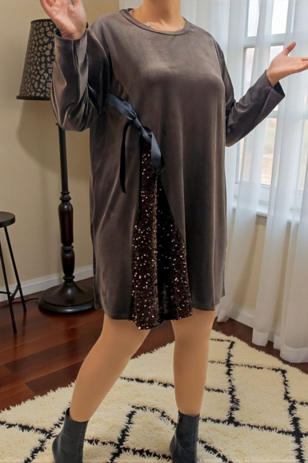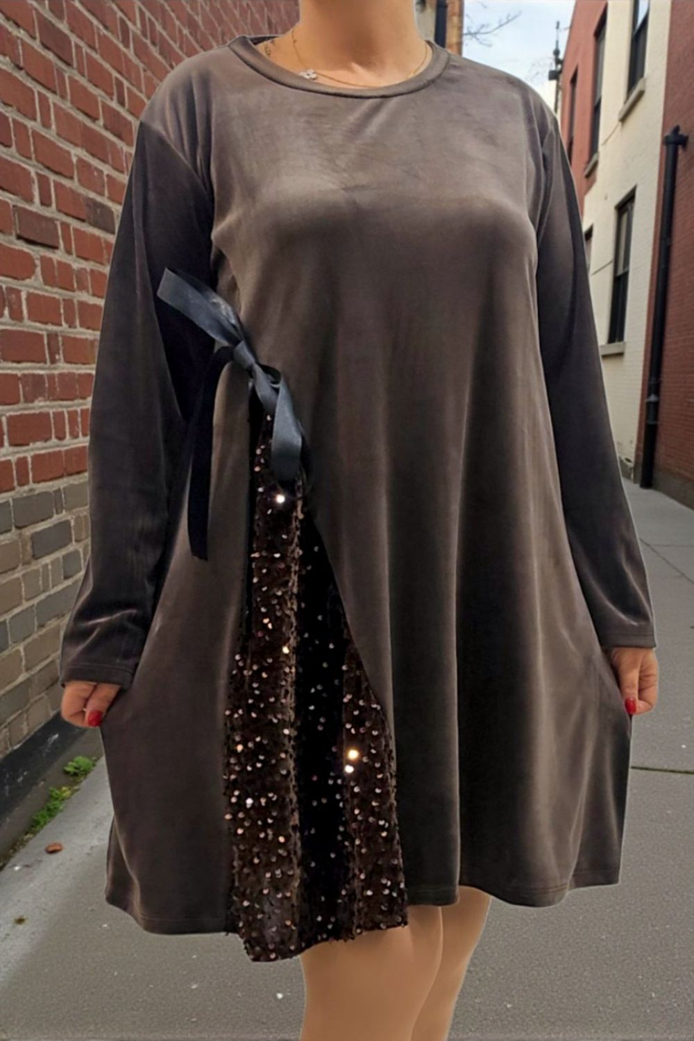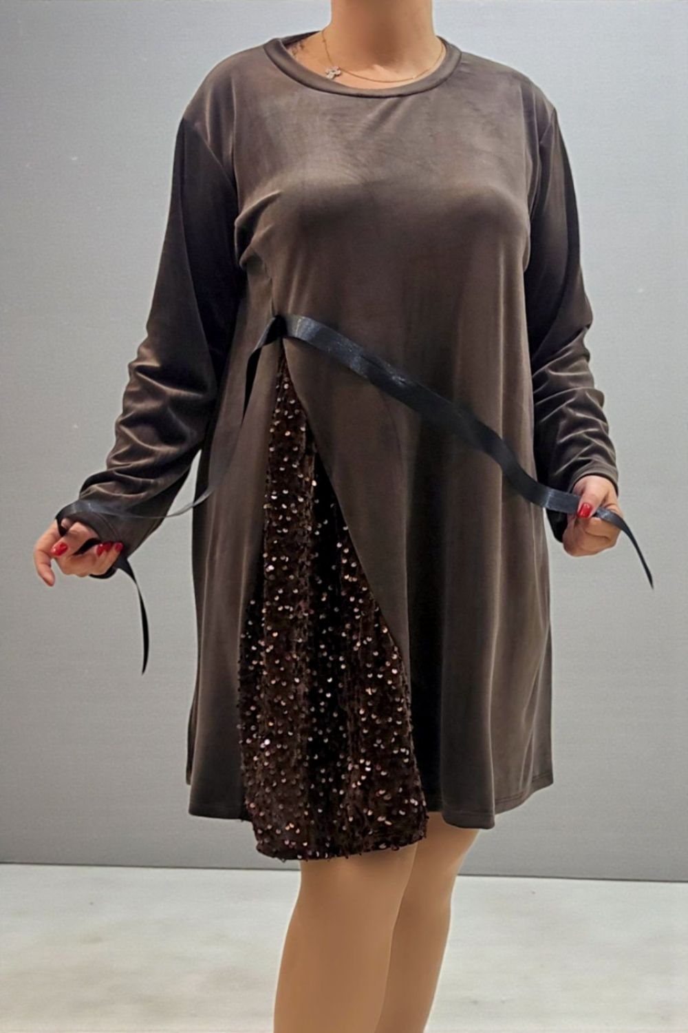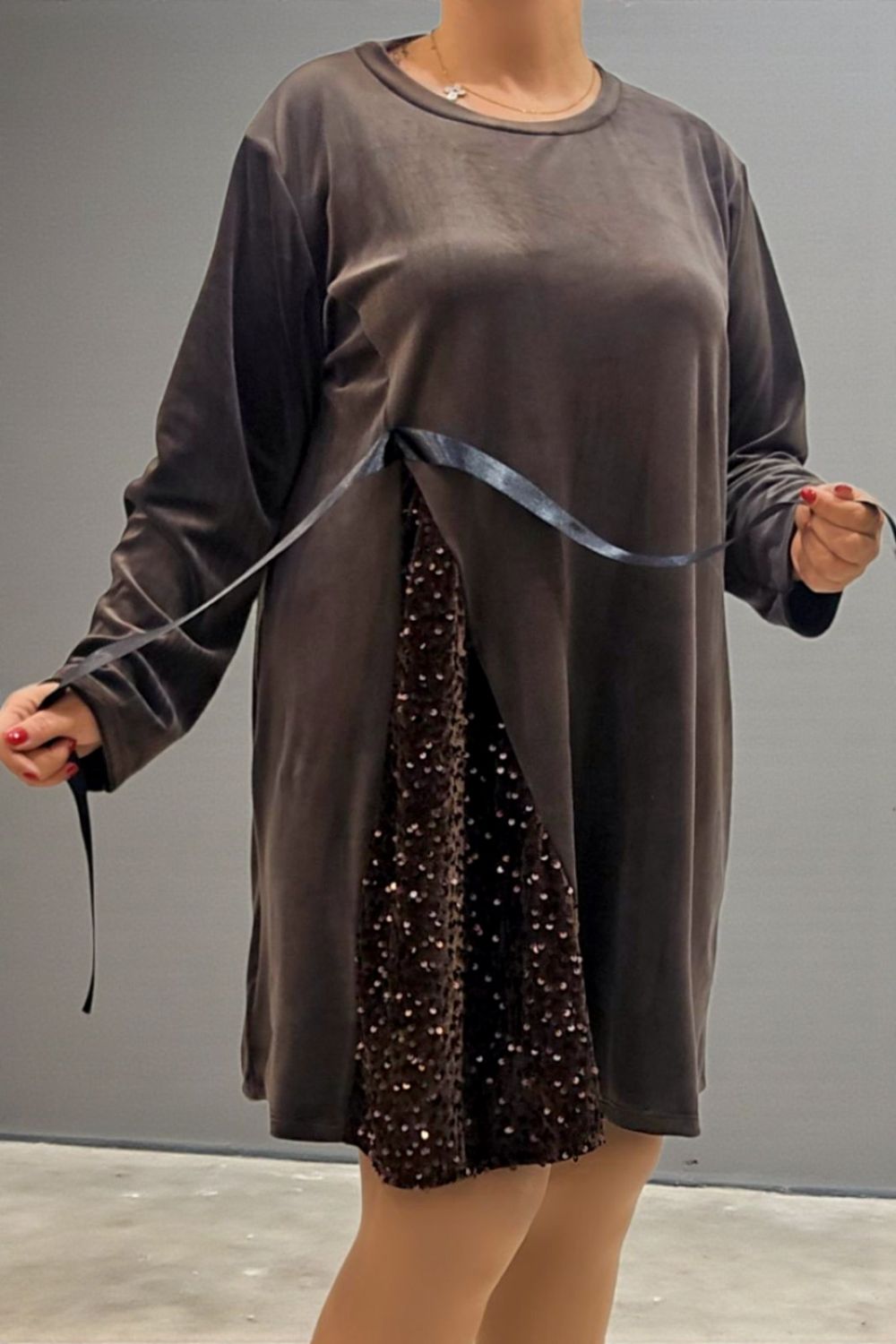 ΑΝΑΝΕΩΣΤΕ ΤΟ ΣΤΥΛ ΣΑΣ ΜΕ ΑΥΤΟ ΤΟ ΕΝΤΥΠΩΣΙΑΚΟ OVER SIZE ΦΟΡΕΜΑ ΣΕ ΑΠΑΛΗ ΒΕΛΟΥΔΙΝΗ ΥΦΗ . Η ΧΑΛΑΡΗ ΓΡΑΜΜΗ ΤΟΥ ΠΡΟΣΦΕΡΕΙ ΑΝΕΣΗ ΚΑΙ ΚΟΜΨΟΤΗΤΑ , ΕΝΩ Η ΜΑΥΡΗ ΒΕΛΟΥΤΕ ΦΑΣΑ ΜΕ ΠΑΓΕΤΕΣ ΠΡΟΣΘΕΤΕΙ ΜΙΑ ΛΑΜΠΕΡΗ ΠΙΝΕΛΙΑ . ΤΟ ΦΟΡΕΜΑ ΟΛΟΚΛΗΡΩΝΕΤΑΙ ΜΕ ΣΑΤΕΝ ΦΙΟΓΚΟ ΠΟΥ ΤΟΝΙΖΕΙ ΔΙΑΚΡΙΤΙΚΑ ΤΟ ΣΧΕΔΙΟ . ΙΔΑΝΙΚΟ ΓΙΑ ΠΙΟ ΙΔΙΑΙΤΕΡΕΣ ΠΕΡΙΣΤΑΣΕΙΣ . ΣΥΝΘΕΣΗ 65% VISCOSE 30% POLYESTER 5% ELASTIN