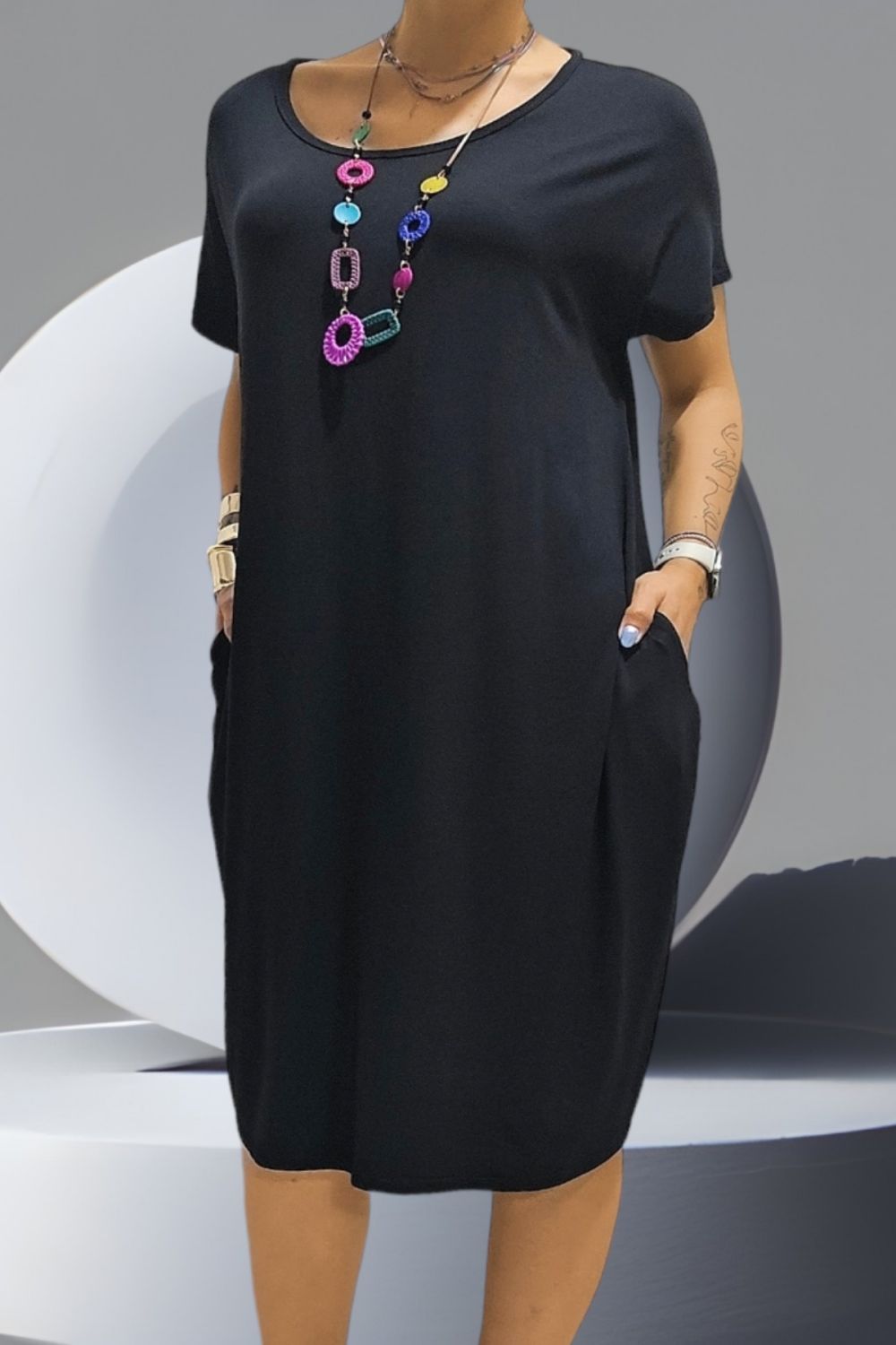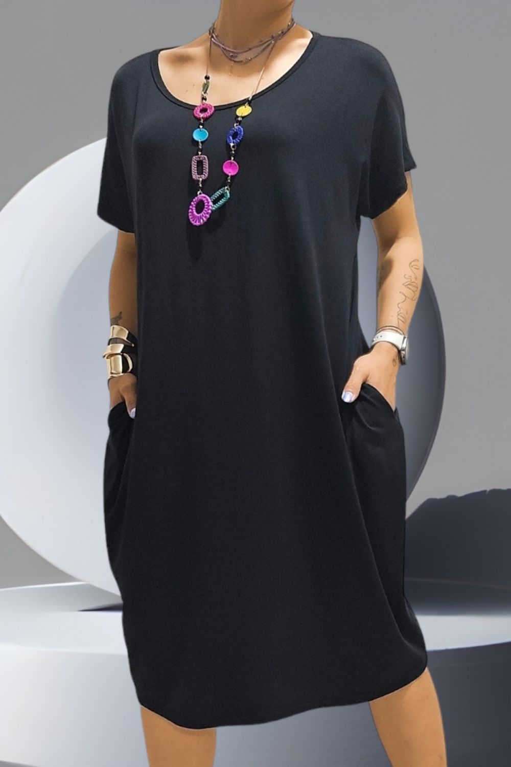 ΠΑΝΕΜΟΡΦΟ ΦΟΡΕΜΑ ΕΥΚΟΛΟΦΟΡΕΤΟ ΣΕ ΥΦΑΣΜΑ ΒΑΜΒΑΚΟΛΥΚΡΑ.ΥΠΕΡΟΧΗ ΥΦΗ,ΕΧΕΙ ΛΑΙΜΟΚΟΨΗ ΑΝΟΙΧΤΗ,ΚΟΝΤΟ ΜΑΝΙΚΙ ΚΑΙ ΤΣΕΠΕΣ ΣΤΟ ΠΛΑΙ.ΜΑΖΙ ΜΕ ΤΟΝ ΚΟΛΙΕ.ΣΥΝΘΕΣΗ 95%VISCOSE5%ELASTIN.