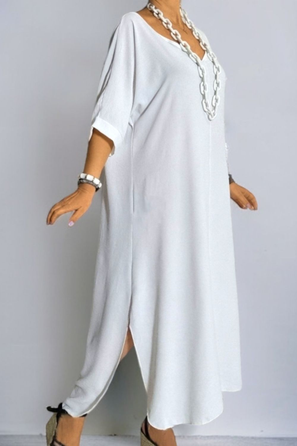 ΜΑΚΡΥ ΑΕΡΙΝΟ ΦΟΡΕΜΑ ΕΛΑΦΡΩΣ ΑΣΥΜΜΕΤΡΟ ΜΕ V ΜΠΡΟΣΤΑ ΣΤΟ ΣΤΗΘΟΣ ΚΑΙ V ΠΙΣΩ ΣΤΗΝ ΠΛΑΤΗ ΜΕ ΔΕΣΙΜΟ ΚΑΙ ΔΥΟ ΣΚΙΣΙΜΑΤΑ ΣΤΟ ΠΛΑΪ.ΕΙΝΑΙ ΜΙΑ ΔΗΜΟΦΙΛΗΣ ΤΑΣΗ ΠΟΥ ΣΥΝΔΥΑΖΕΙ ΤΗΝ ΑΝΕΣΗ ΜΕ ΤΗΝ ΘΗΛΥΚΟΤΗΤΑ.ΕΤΟΙΜΑΣΤΕΙΤΕ ΝΑ ΚΛΕΨΕΤΕ ΤΙΣ ΕΝΤΥΠΩΣΕΙΣ.ΣΥΝΘΕΣΗ 60% POLYESTER 35% VISCOSE 5% ELASTIN.