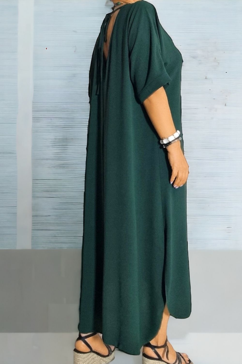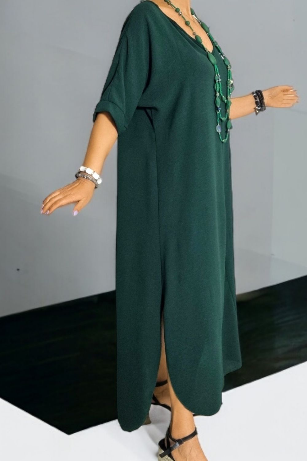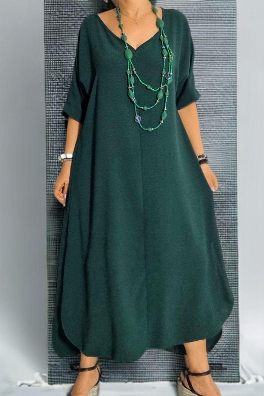 ΜΑΚΡΥ ΑΕΡΙΝΟ ΦΟΡΕΜΑ ΕΛΑΦΡΩΣ ΑΣΥΜΜΕΤΡΟ ΜΕ V ΜΠΡΟΣΤΑ ΣΤΟ ΣΤΗΘΟΣ ΚΑΙ V ΠΙΣΩ ΣΤΗΝ ΠΛΑΤΗ ΜΕ ΔΕΣΙΜΟ ΚΑΙ ΔΥΟ ΣΚΙΣΙΜΑΤΑ ΣΤΟ ΠΛΑΪ.ΕΙΝΑΙ ΜΙΑ ΔΗΜΟΦΙΛΗΣ ΤΑΣΗ ΠΟΥ ΣΥΝΔΥΑΖΕΙ ΤΗΝ ΑΝΕΣΗ ΜΕ ΤΗΝ ΘΗΛΥΚΟΤΗΤΑ.ΕΤΟΙΜΑΣΤΕΙΤΕ ΝΑ ΚΛΕΨΕΤΕ ΤΙΣ ΕΝΤΥΠΩΣΕΙΣ.ΣΥΝΘΕΣΗ 60% POLYESTER 35% VISCOSE 5% ELASTIN.