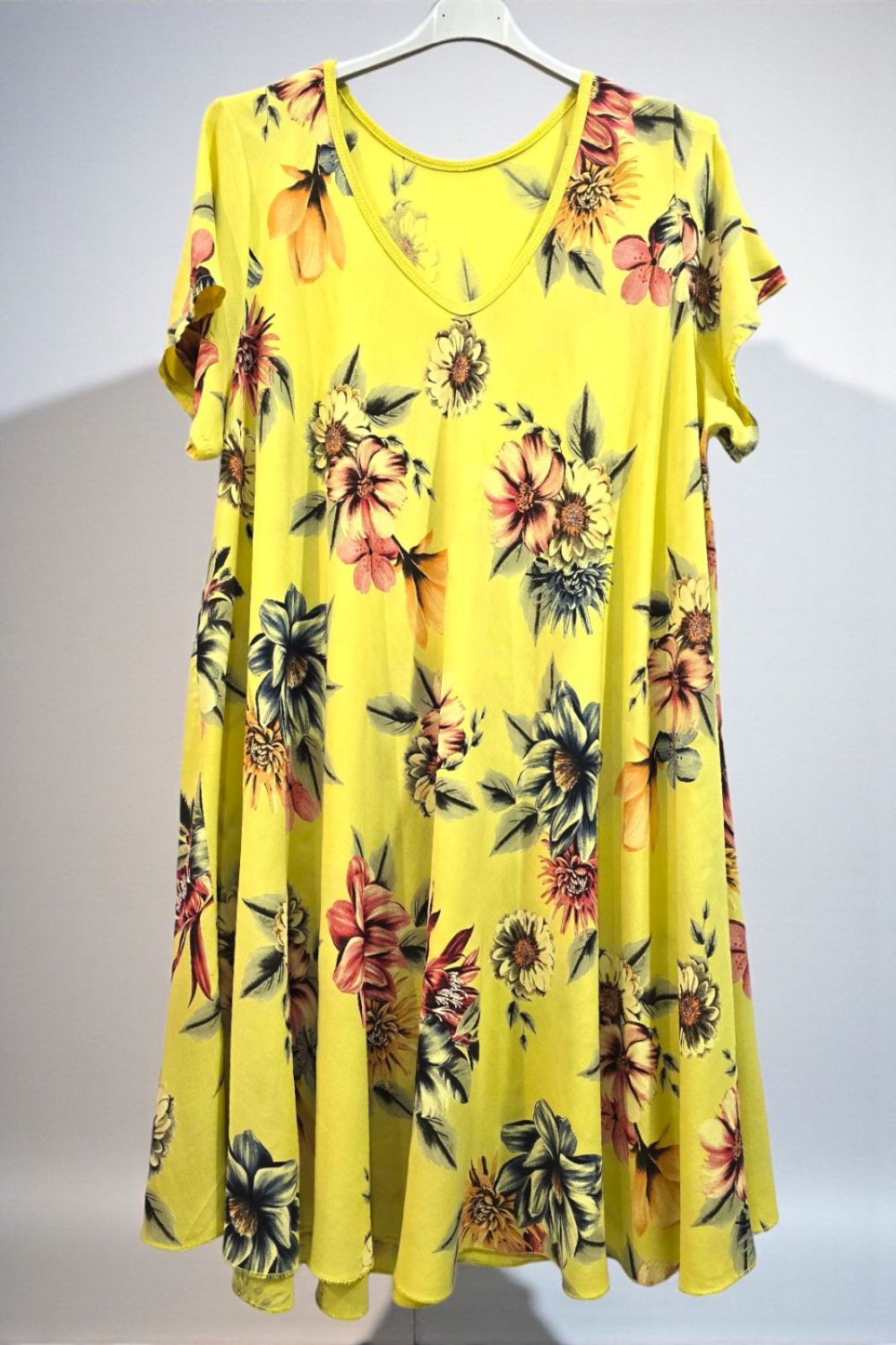 ΠΑΝΕΜΟΡΦΟ ΦΛΟΡΑΛ ΦΟΡΕΜΑ ΓΙΑ PLUS SIZE ΜΕΓΕΘΗ.ΚΑΤΑΣΚΕΥΑΣΜΕΝΟ ΑΠΟ ΑΝΑΛΑΦΡΟ ΚΑΙ ΔΡΟΣΕΡΟ ΥΦΑΣΜΑ,ΣΕ ΑΛΦΑ ΓΡΑΜΜΗ,ΜΕ ΚΟΝΤΟ ΜΑΝΙΚΙ .ΣΥΝΘΕΣΗ 95%VISCOSE 5%ELASTIN.