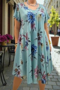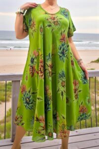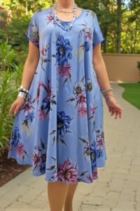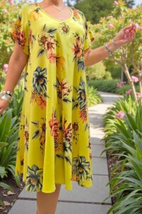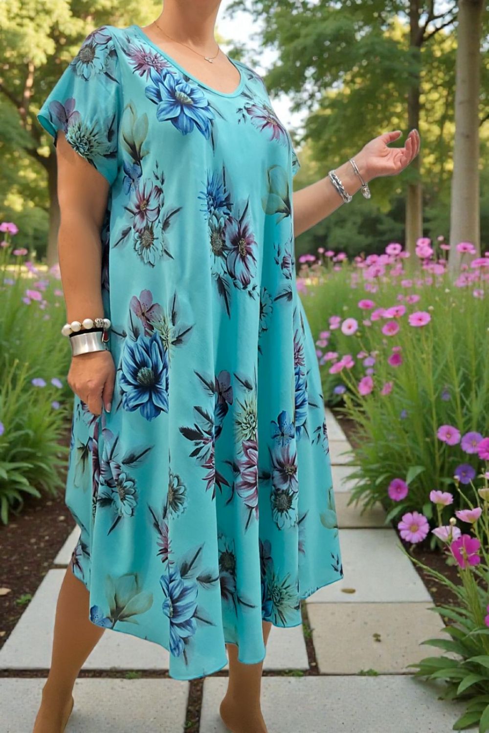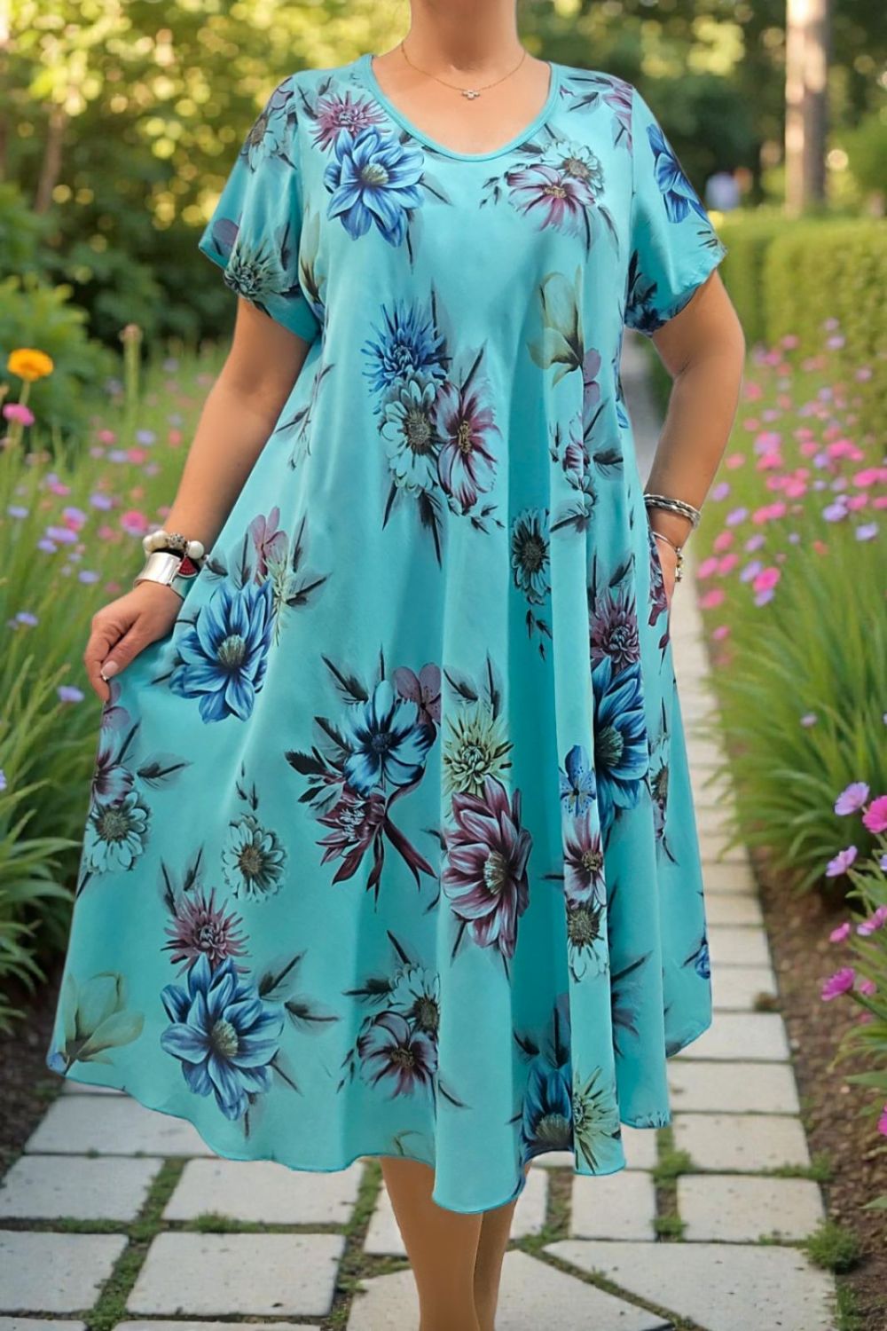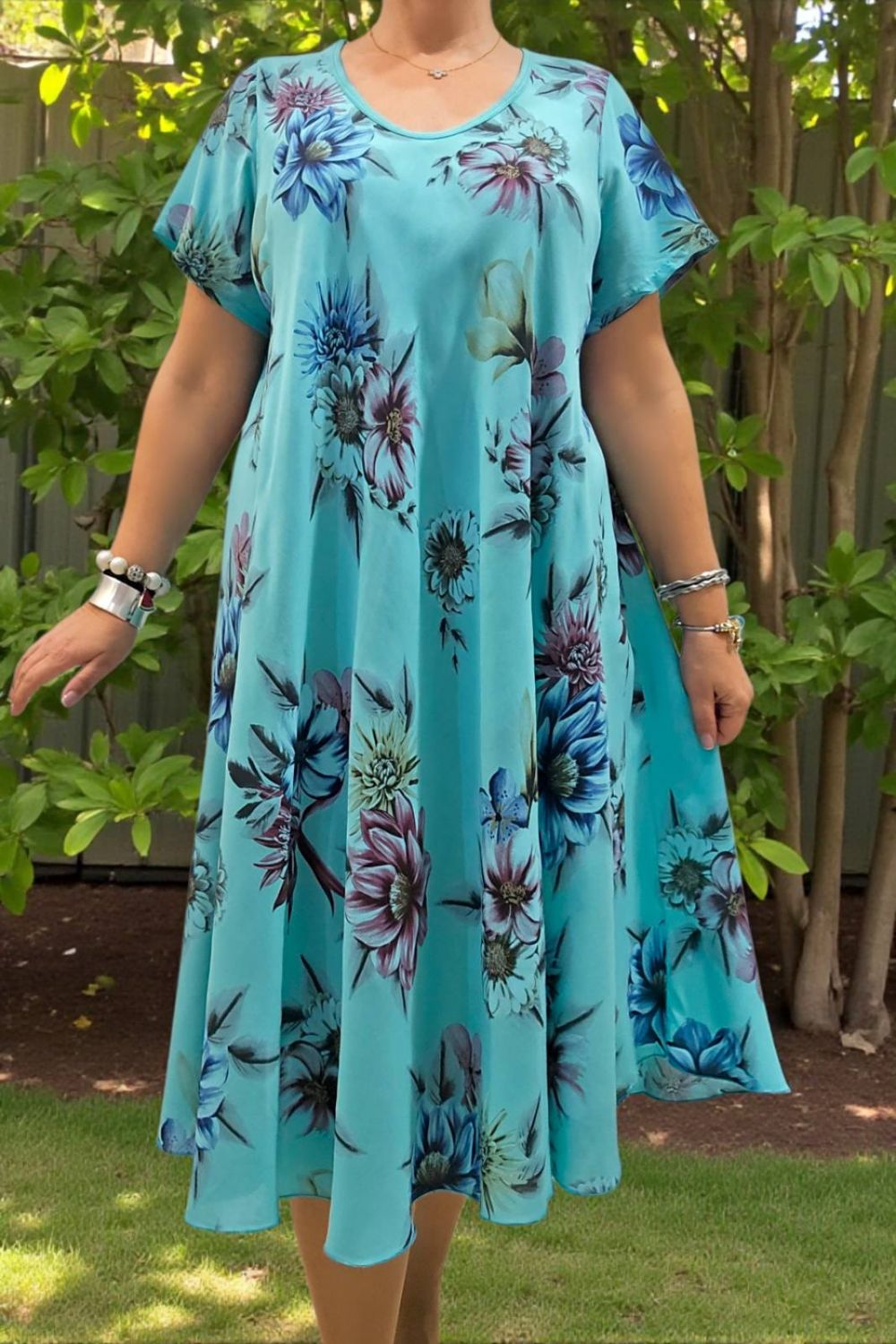 ΠΑΝΕΜΟΡΦΟ ΦΛΟΡΑΛ ΦΟΡΕΜΑ ΓΙΑ PLUS SIZE ΜΕΓΕΘΗ.ΚΑΤΑΣΚΕΥΑΣΜΕΝΟ ΑΠΟ ΑΝΑΛΑΦΡΟ ΚΑΙ ΔΡΟΣΕΡΟ ΥΦΑΣΜΑ,ΣΕ ΑΛΦΑ ΓΡΑΜΜΗ,ΜΕ ΚΟΝΤΟ ΜΑΝΙΚΙ .ΣΥΝΘΕΣΗ 95%VISCOSE 5%ELASTIN.