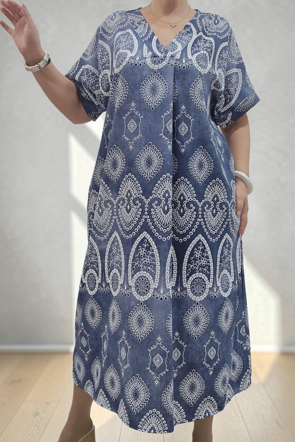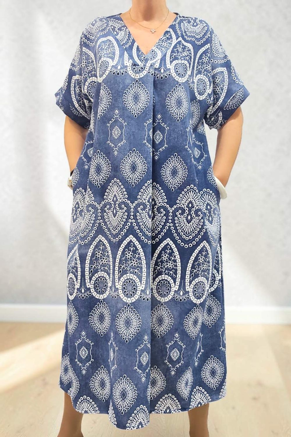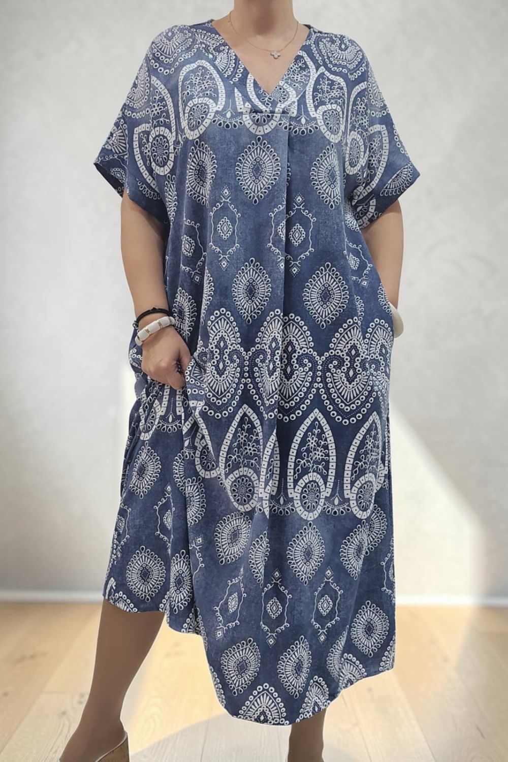 ΑΕΡΙΝΟ ΜΑΚΡΥ ΦΟΡΕΜΑ ΠΟΥ ΣΥΝΔΥΑΖΕΙ ΔΙΑΧΡΟΝΙΚΗ ΚΟΜΨΟΤΗΤΑ ΚΑΙ ΑΝΕΣΗ.ΔΙΑΘΕΤΕΙ ΚΟΛΑΚΕΥΤΙΚΗ ΛΑΙΜΟΚΟΨΗ ΣΕ ΣΧΗΜΑ V,ΕΝΩ ΤΟ ΔΙΑΚΡΙΤΙΚΟ ΠΙΕΤΑΚΙ ΣΤΟ ΝΤΕΚΟΛΤΕ,ΧΑΡΙΖΕΙ ΕΠΙΠΛΕΟΝ ΚΟΜΨΟΤΗΤΑ.ΤΟ ΕΝΤΥΠΩΣΙΑΚΟ ΜΟΤΙΒΑ,ΤΟΣΟ ΣΤΟ ΠΡΟΣΤΙΝΟ,ΟΣΟ ΚΑΙ ΣΤΟ ΠΙΣΩ ΜΕΡΟΣ, ΠΡΟΣΔΙΔΕΙ ΙΔΙΑΙΤΕΡΟ ΧΑΡΑΚΤΗΡΑ. ΚΑΤΑΣΚΕΥΑΣΜΕΝΟ ΣΕ ΧΑΛΑΡΗ, ΑΝΕΤΗ ΓΡΑΜΜΗ ,ΓΙΑ ΑΠΟΛΥΤΗ ΕΛΕΥΘΕΡΙΑ ΚΙΝΗΣΕΩΝ,ΕΝΩ ΕΠΙΠΡΟΣΘΕΤΩΣ ΔΙΑΘΕΤΕΙ ΚΑΙ ΠΛΑΙΝΕΣ ΤΣΕΠΕΣ ΓΙΑ ΠΡΑΚΤΙΚΟΤΗΤΑ.ΕΝΑ CHIC ΦΟΡΕΜΑ ΠΟΥ ΔΕΝ ΠΡΕΠΕΙ ΝΑ ΛΕΙΠΕΙ ΑΠΟ ΤΗΝ ΣΥΛΛΟΓΗ ΣΑΣ.ΣΥΝΘΕΣΗ 95% COTTON 5% ELASTIN