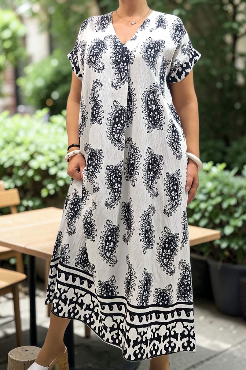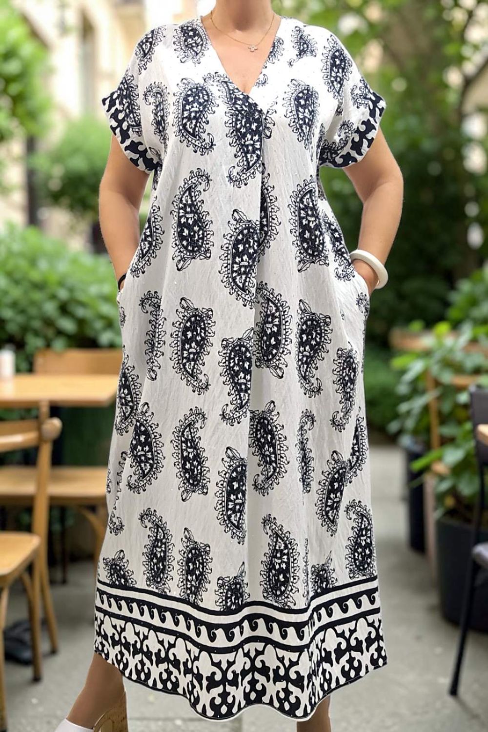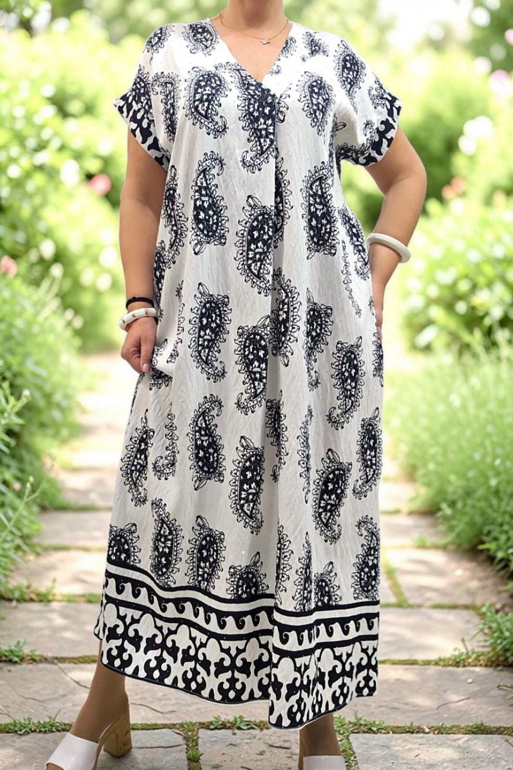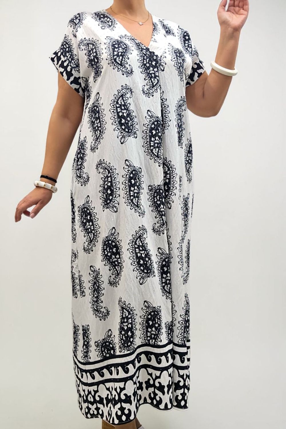 ΑΕΡΙΝΟ ΜΑΚΡΥ ΦΟΡΕΜΑ ΠΟΥ ΣΥΝΔΥΑΖΕΙ ΔΙΑΧΡΟΝΙΚΗ ΚΟΜΨΟΤΗΤΑ ΚΑΙ ΑΝΕΣΗ.ΔΙΑΘΕΤΕΙ ΚΟΛΑΚΕΥΤΙΚΗ ΛΑΙΜΟΚΟΨΗ ΣΕ ΣΧΗΜΑ V,ΕΝΩ ΤΟ ΔΙΑΚΡΙΤΙΚΟ ΠΙΕΤΑΚΙ ΣΤΟ ΝΤΕΚΟΛΤΕ,ΧΑΡΙΖΕΙ ΕΠΙΠΛΕΟΝ ΚΟΜΨΟΤΗΤΑ.ΤΟ ΕΝΤΥΠΩΣΙΑΚΟ ΜΟΤΙΒΟ ΚΑΙ ΤΟ ΔΙΑΚΡΙΤΙΚΟ ΣΤΡΑΣ, ΠΡΟΣΔΙΔΕΙ ΙΔΙΑΙΤΕΡΟ ΧΑΡΑΚΤΗΡΑ ΚΑΙ ΛΑΜΨΗ. ΚΑΤΑΣΚΕΥΑΣΜΕΝΟ ΣΕ ΧΑΛΑΡΗ, ΑΝΕΤΗ ΓΡΑΜΜΗ ,ΓΙΑ ΑΠΟΛΥΤΗ ΕΛΕΥΘΕΡΙΑ ΚΙΝΗΣΕΩΝ,ΕΝΩ ΕΠΙΠΡΟΣΘΕΤΩΣ ΔΙΑΘΕΤΕΙ ΚΑΙ ΠΛΑΙΝΕΣ ΤΣΕΠΕΣ ΓΙΑ ΠΡΑΚΤΙΚΟΤΗΤΑ.ΕΝΑ CHIC ΦΟΡΕΜΑ ΠΟΥ ΔΕΝ ΠΡΕΠΕΙ ΝΑ ΛΕΙΠΕΙ ΑΠΟ ΤΗΝ ΣΥΛΛΟΓΗ ΣΑΣ.ΣΥΝΘΕΣΗ 95% COTTON 5% ELASTIN