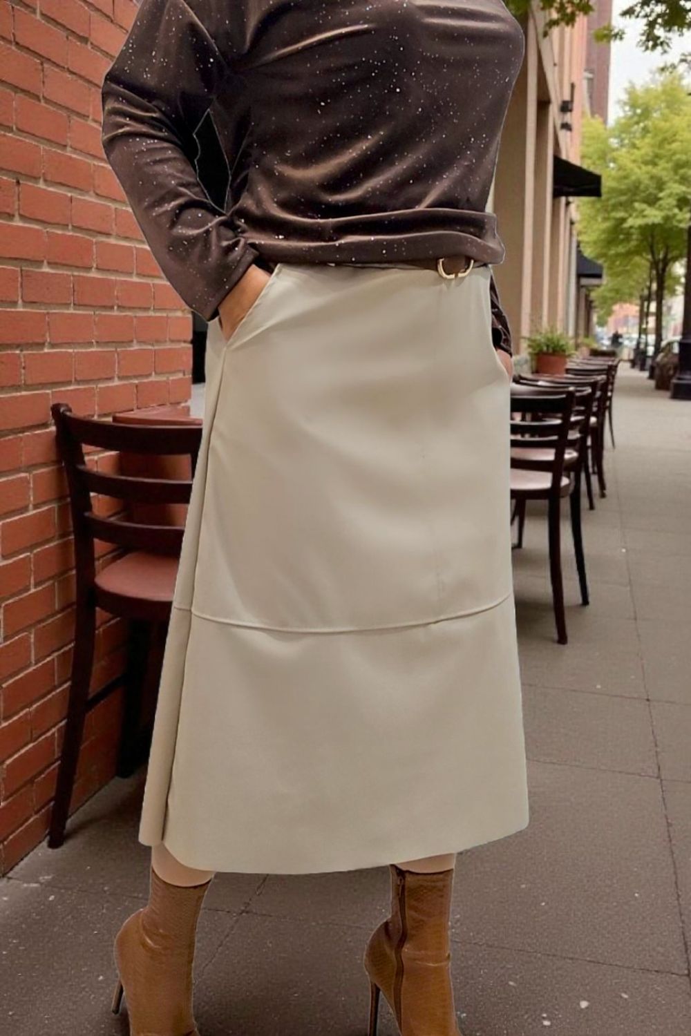 ΕΝΤΥΠΩΣΙΑΚΗ ΔΕΡΜΑΤΙΝΗ ΦΟΥΣΤΑ ΣΕ ΑΛΦΑ ΓΡΑΜΜΗ , ΣΧΕΔΙΑΣΜΕΝΗ ΓΙΑ ΑΝΕΣΗ ΚΑΙ ΣΤΥΛ . ΔΙΑΘΕΤΕΙ ΠΡΑΚΤΙΚΕΣ ΠΛΑΪΝΕΣ ΤΣΕΠΕΣ ΚΑΙ ΣΥΝΟΔΕΥΕΤΑΙ ΑΠΟ ΚΟΜΨΗ ΔΕΡΜΑΤΙΝΗ ΖΩΝΗ , ΠΟΥ ΤΟΝΙΖΕΙ ΤΗ ΜΕΣΗ . Η ΕΞΩΓΑΖΑ ΡΑΦΗ ΠΕΡΙΜΕΤΡΙΚΑ ΠΡΟΣΘΕΤΕΙ ΜΙΑ ΜΟΝΤΕΡΝΑ ΛΕΠΤΟΜΕΡΕΙΑ . ΙΔΑΝΙΚΗ ΓΙΑ ΕΝΤΥΠΩΣΙΑΚΕΣ ΕΜΦΑΝΙΣΕΙΣ ΤΟΣΟ ΣΤΗΝ ΚΑΘΗΜΕΡΙΝΟΤΗΤΑ ΟΣΟ ΚΑΙ ΣΕ ΠΙΟ ΙΔΙΑΙΤΕΡΕΣ ΠΕΡΙΣΤΑΣΕΙΣ. ΣΥΝΘΕΣΗ 96% POLYESTER 4 % ELASTIN
