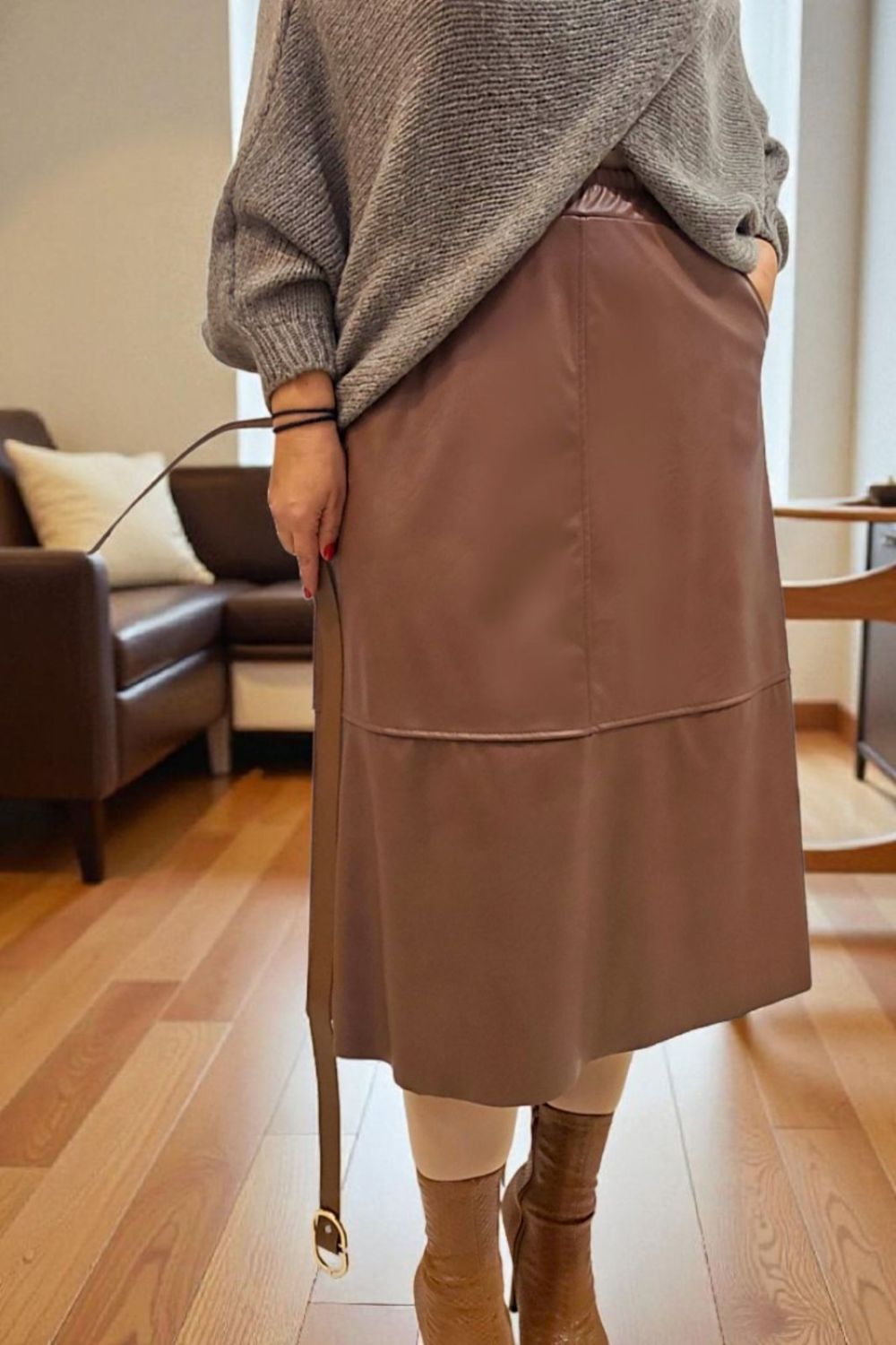 ΕΝΤΥΠΩΣΙΑΚΗ ΔΕΡΜΑΤΙΝΗ ΦΟΥΣΤΑ ΣΕ ΑΛΦΑ ΓΡΑΜΜΗ , ΣΧΕΔΙΑΣΜΕΝΗ ΓΙΑ ΑΝΕΣΗ ΚΑΙ ΣΤΥΛ . ΔΙΑΘΕΤΕΙ ΠΡΑΚΤΙΚΕΣ ΠΛΑΪΝΕΣ ΤΣΕΠΕΣ ΚΑΙ ΣΥΝΟΔΕΥΕΤΑΙ ΑΠΟ ΚΟΜΨΗ ΔΕΡΜΑΤΙΝΗ ΖΩΝΗ , ΠΟΥ ΤΟΝΙΖΕΙ ΤΗ ΜΕΣΗ . Η ΕΞΩΓΑΖΑ ΡΑΦΗ ΠΕΡΙΜΕΤΡΙΚΑ ΠΡΟΣΘΕΤΕΙ ΜΙΑ ΜΟΝΤΕΡΝΑ ΛΕΠΤΟΜΕΡΕΙΑ . ΙΔΑΝΙΚΗ ΓΙΑ ΕΝΤΥΠΩΣΙΑΚΕΣ ΕΜΦΑΝΙΣΕΙΣ ΤΟΣΟ ΣΤΗΝ ΚΑΘΗΜΕΡΙΝΟΤΗΤΑ ΟΣΟ ΚΑΙ ΣΕ ΠΙΟ ΙΔΙΑΙΤΕΡΕΣ ΠΕΡΙΣΤΑΣΕΙΣ. ΣΥΝΘΕΣΗ 96% POLYESTER 4 % ELASTIN