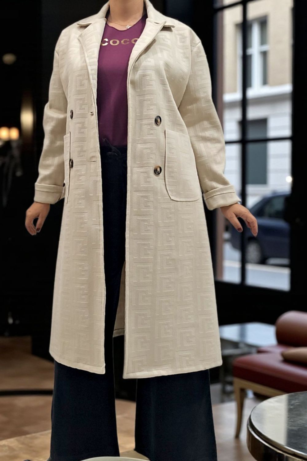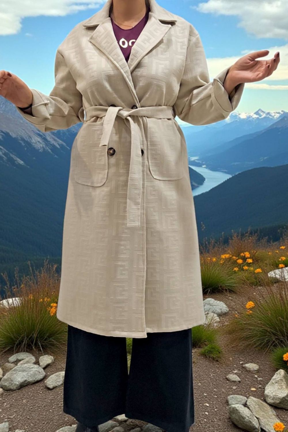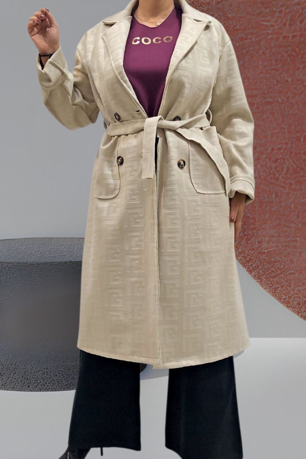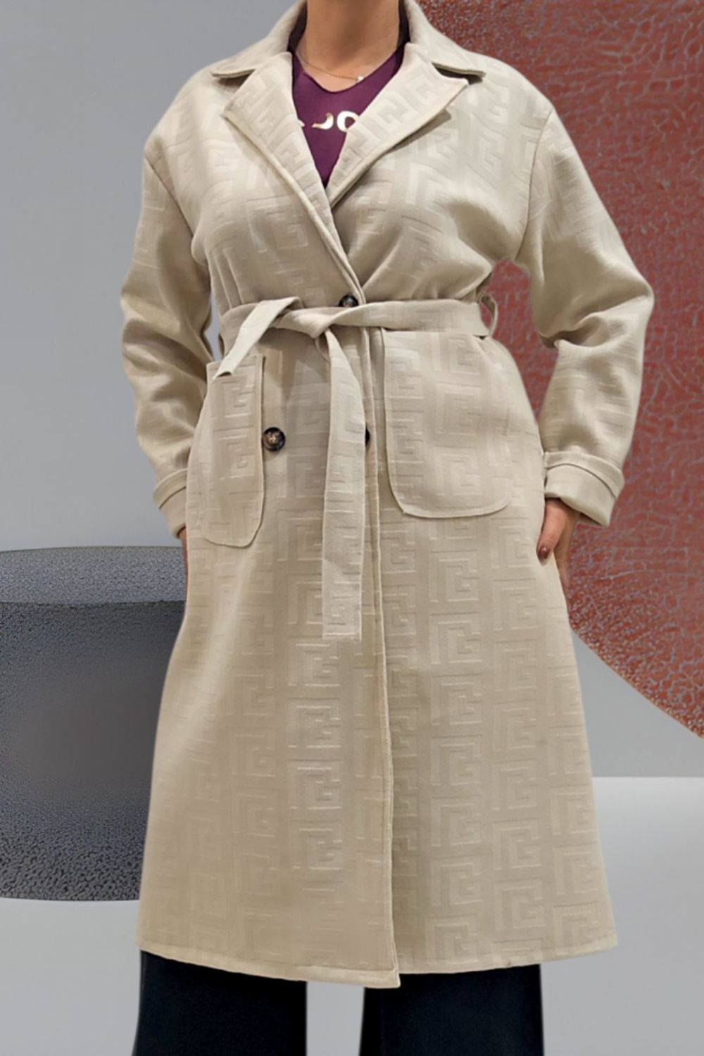 ΕΥΚΟΛΟΦΟΡΕΤΟ ΜΑΚΡΥ ΠΑΛΤΟ ΣΕ ΜΠΕΖ ΑΝΟΙΧΤΟ ΑΠΟΧΡΩΣΗ.ΤΟ ΥΦΑΣΜΑ ΕΧΕΙ ΕΠΑΝΑΛΑΜΒΟΜΕΝΟ ΓΕΩΜΕΤΡΙΚΟ ΣΧΕΔΙΟ.ΤΟ ΠΑΛΤΟ ΔΙΑΘΕΤΕΙ ΓΙΑΚΑ ΚΑΙ ΠΕΤΟ,ΔΥΟ ΜΕΓΑΛΕΣ ΤΣΕΠΕΣ ΚΑΙ ΔΙΠΛΗ ΣΕΙΡΑ ΑΠΟ ΚΟΥΜΠΙΑ .ΣΤΗΝ ΜΕΣΗ ΕΧΕΙ ΖΩΝΗ ΑΠΟ ΤΟ ΙΔΙΟ ΥΦΑΣΜΑ .ΤΟ ΣΤΥΛ ΤΟΥ ΕΙΝΑΙ ΚΟΜΨΟ ΚΑΤΑΛΛΗΛΟ ΓΙΑ ΦΘΙΝΟΠΩΡΙΝΕΣ ΚΑΙ ΧΕΙΜΕΡΙΝΕΣ ΕΜΦΑΝΙΣΕΙΣ.