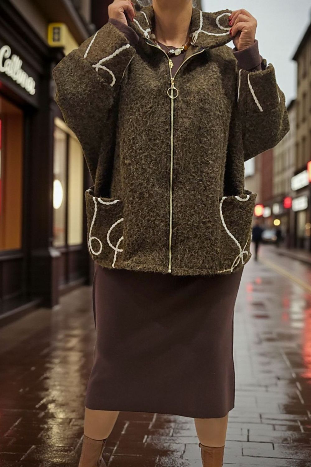 ΑΝΑΝΕΩΣΤΕ ΤΟ ΣΤΥΛ ΣΑΣ ΜΕ ΑΥΤΟ ΤΟ ΕΝΤΥΠΩΣΙΑΚΟ ΠΑΝΩΦΟΡΙ ΣΕ ΑΠΑΛΟ ΜΠΟΥΚΛΕ ΥΦΑΣΜΑ.ΔΙΑΘΕΤΕΙ ΛΕΥΚΑ ΠΛΕΚΤΑ ΣΧΕΔΙΑ ΠΟΥ ΠΡΟΣΘΕΤΟΥΝ ΜΟΝΑΔΙΚΕΣ ΛΕΠΤΟΜΕΡΕΙΕΣ.ΚΛΕΙΝΕΙ ΜΠΡΟΣΤΑ ΜΕ ΦΕΡΜΟΥΑΡ ΚΑΙ ΔΙΑΘΕΤΕΙ ΤΣΕΠΕΣ ΣΤΑ ΠΛΑΓΙΑ.ΙΔΑΝΙΚΟ ΓΙΑ ΚΑΘΗΜΕΡΙΝΕΣ ΚΑΙ ΠΙΟ ΙΔΙΑΙΤΕΡΕΣ ΕΜΦΑΝΙΣΕΙΣ,ΑΥΤΟ ΤΟ ΠΑΝΩΦΟΡΙ ΣΥΝΔΥΑΖΕΙ ΑΝΕΣΗ,ΖΕΣΤΑΣΙΑ ΚΑΙ ΣΤΥΛ ΣΕ ΚΑΘΕ ΣΑΣ ΒΗΜΑ.ΣΥΝΘΕΣΗ 70% POLYESTER 30% LANA.