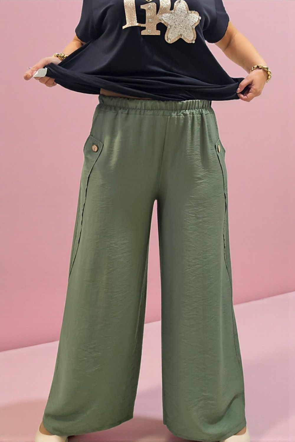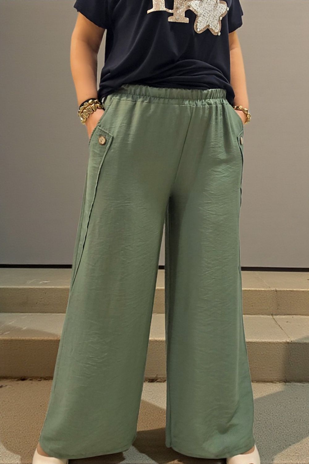 ΚΟΜΨΗ ΚΑΙ ΑΝΕΤΗ ΠΑΝΤΕΛΟΝΑ ΣΕ ΜΟΝΤΕΡΝΑ ΓΡΑΜΜΗ,ΙΔΑΝΙΚΗ ΓΙΑ ΚΑΘΗΜΕΡΙΝΕΣ ΑΛΛΑ ΚΑΙ ΓΙΑ ΠΙΟ ΠΡΟΣΕΓΜΕΝΕΣ ΕΜΦΑΝΙΣΕΙΣ.ΔΙΑΘΕΤΕΙ ΕΛΑΣΤΙΚΗ ΜΕΣΗ ΜΕ ΛΑΣΤΙΧΟ, ΓΙΑ ΤΕΛΕΙΑ ΕΔΑΡΜΟΓΗ ΟΛΗ ΜΕΡΑ.Η ΓΡΑΜΜΗ ΤΗΣ ΚΑΘΩΣ ΞΕΚΙΝΑΕΙ ΑΠΟ ΙΣΙΑ ΚΑΙ ΕΛΑΦΡΩΣ ΦΑΡΔΑΙΝΕΙ ΣΤΟ ΤΕΛΕΙΩΜΑ,ΧΑΡΙΖΕΙ ΚΙΝΗΣΗ ΚΑΙ ΚΟΛΑΚΕΥΕΙ ΤΗΝ ΣΙΛΟΥΕΤΑ,ΕΝΩ ΟΙ ΠΛΑΙΝΕΣ ΤΣΕΠΕΣ ΜΕ ΔΙΑΚΟΣΜΗΤΙΚΟ ΚΟΥΜΠΙ,ΠΡΟΣΘΕΤΟΥΝ ΠΡΑΚΤΙΚΟΤΗΤΑ ΑΛΛΑ ΚΑΙ ΔΙΑΚΡΙΤΙΚΗ ΛΕΠΤΟΜΕΡΕΙΑ ΣΤΥΛ.ΚΑΤΑΣΚΕΤΑΣΜΕΝΗ ΑΠΟ ΕΛΑΦΡΥ ΚΑΙ ΔΡΟΣΕΡΟ ΥΦΑΣΜΑ,ΦΟΡΙΕΤΑΙ ΕΥΚΟΛΑ ΑΠΟ ΤΟ ΠΡΩΙ ΩΣ ΤΟ ΒΡΑΔΥ. 95% VISCOSE 5% POLYESTER.