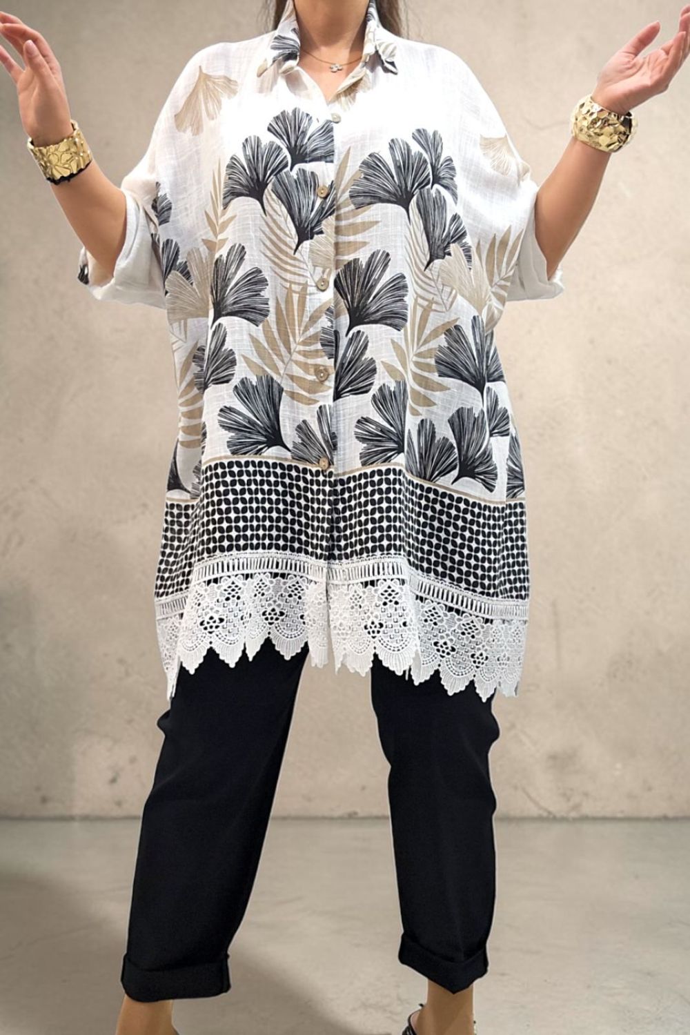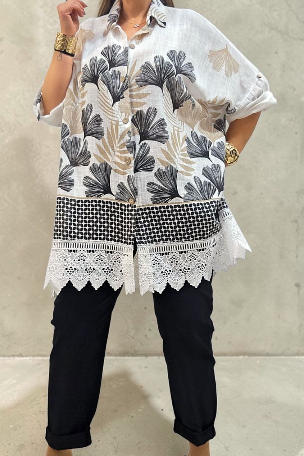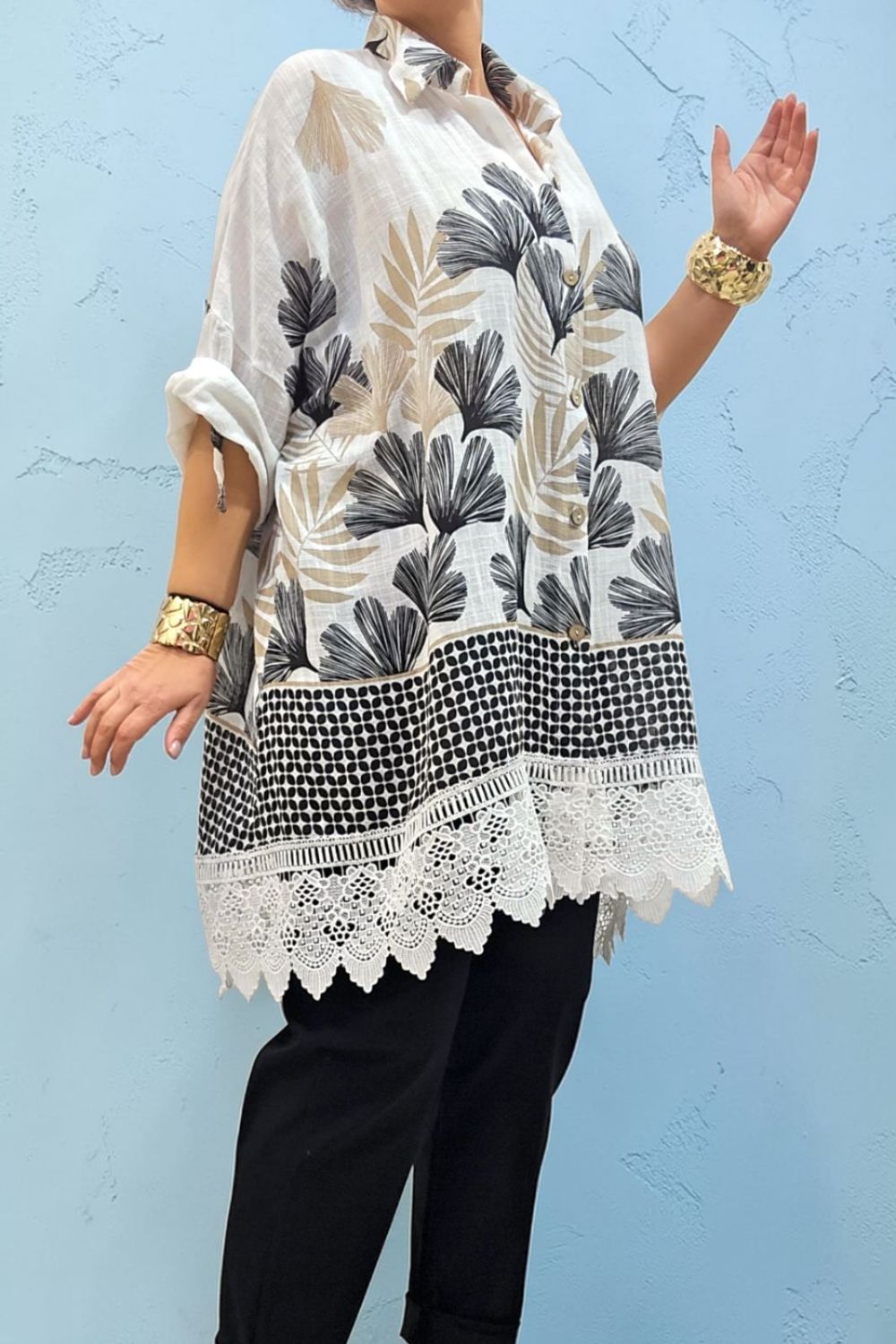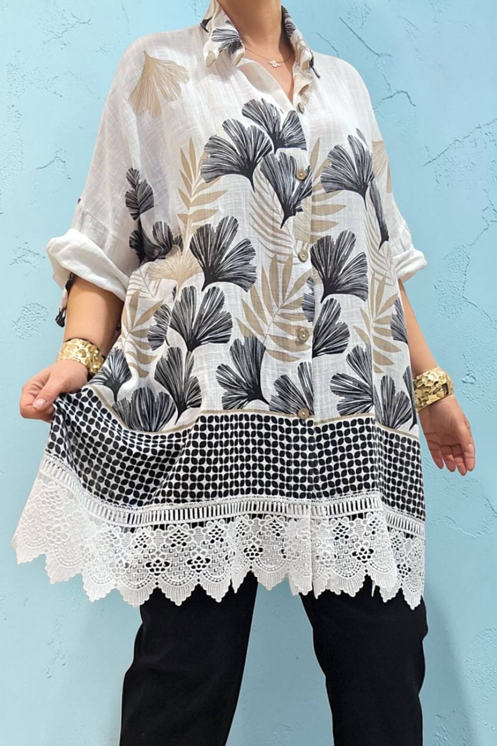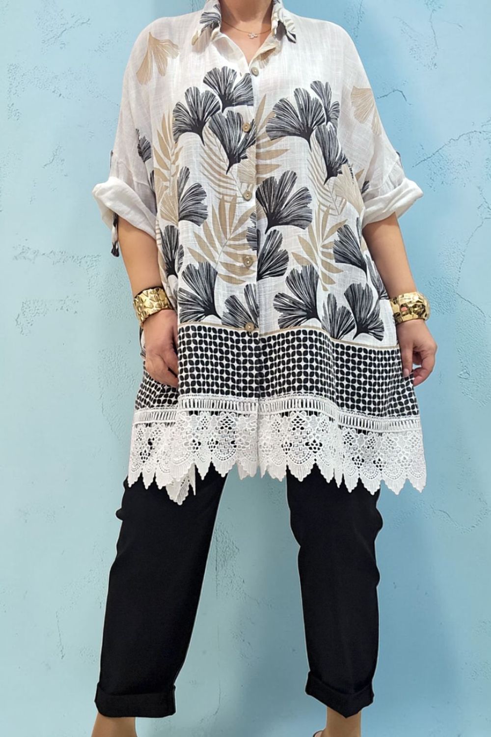 ΑΕΡΙΝΗ ΕΝΤΥΠΩΣΙΑΚΗ PLUS SIZE ΠΟΥΚΑΜΙΣΑ ΣΕ LOOSE ΓΡΑΜΜΗ, ΜΕ ΤΡΟΠΙΚΟ PRINT ,ΙΔΑΝΙΚΗ ΓΙΑ ΣΤΙΛΑΤΕΣ ΚΑΙ ΑΝΕΤΕΣ ΕΜΦΑΝΙΣΕΙΣ ΑΠΟ ΤΟ ΠΡΩΙ ΩΣ ΤΟ ΒΡΑΔΥ.ΔΙΑΘΕΤΕΙ ΚΟΥΜΠΙΑ ΣΕ ΟΛΟ ΤΟ ΜΗΚΟΣ ΚΑΙ ΜΑΝΙΚΙΑ ΠΟΥ ΓΥΡΙΖΟΥΝ ΓΙΑ ΠΙΟ ΕΥΕΛΙΚΤΟ ΚΑΙ ΧΑΛΑΡΟ ΣΤΥΛ.ΤΟ ΙΔΙΑΙΤΕΡΟ ΧΑΡΑΚΤΗΡΙΣΤΙΚΟ ΤΗΣ ΕΙΝΑΙ ΤΟ ΔΙΑΚΟΣΜΗΤΙΚΟ ΤΕΛΕΙΩΜΑ ΜΕ ΔΑΝΤΕΛΑ ΣΤΟ ΚΑΤΩ ΜΕΡΟΣ,ΠΟΥ ΠΡΟΣΘΕΤΕΙ ΘΗΛΥΚΟΤΗΤΑ ΚΑΙ ΜΟΝΑΔΙΚΟ ΧΑΡΑΚΤΗΡΑ.ΣΥΝΘΕΣΗ 100% COTTON