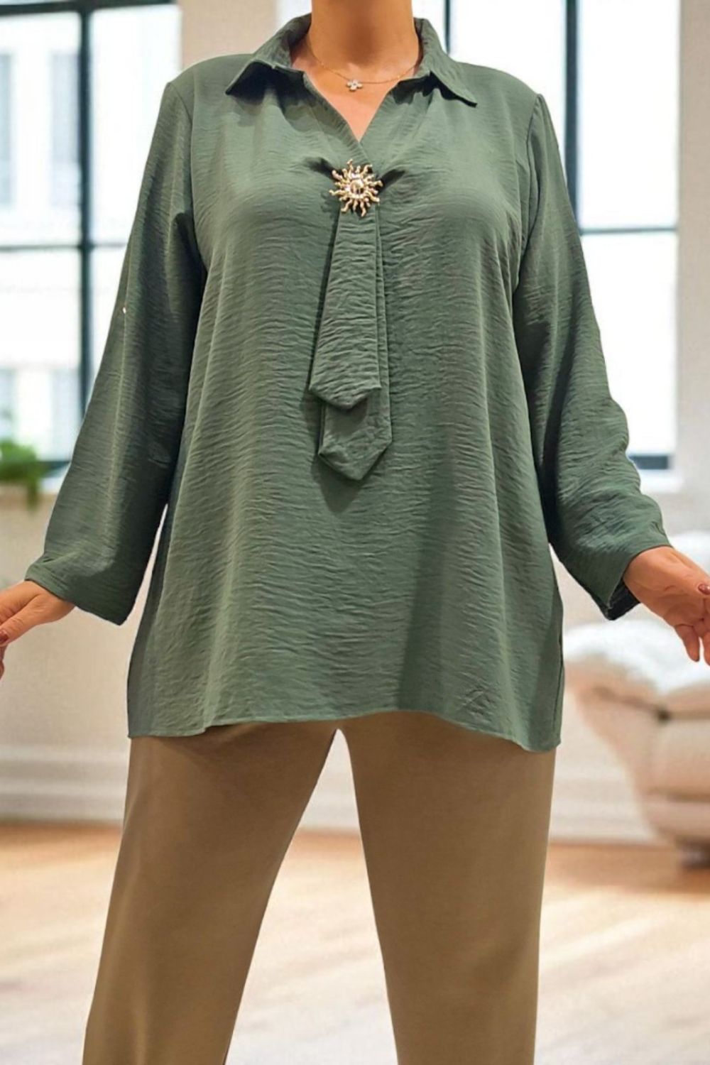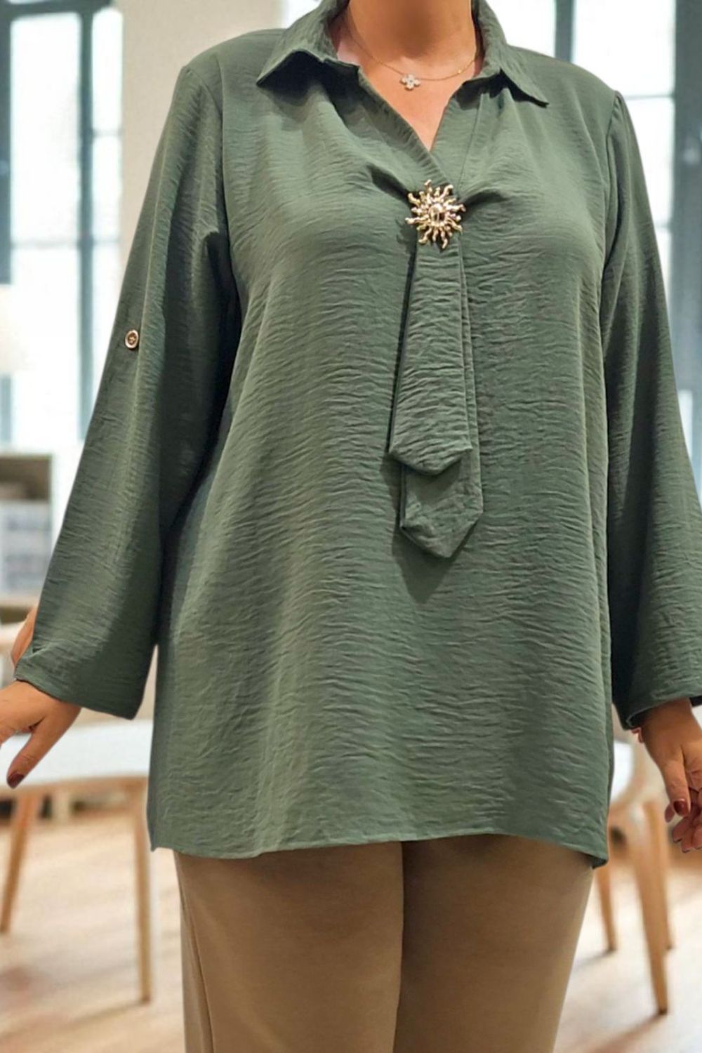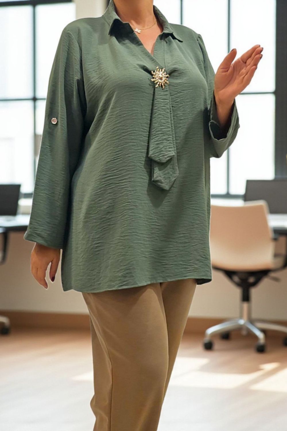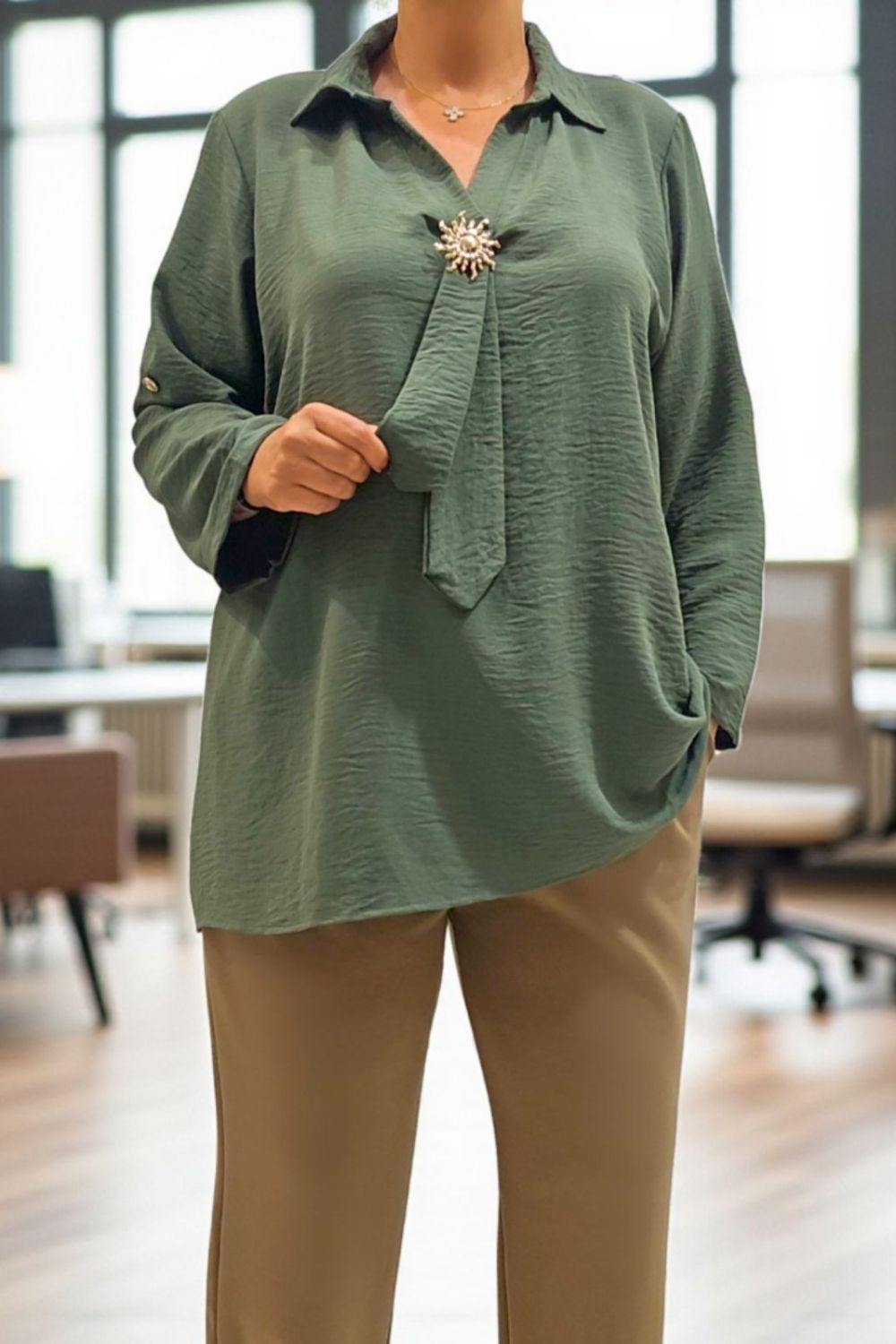 ΚΟΜΨΟ ΠΟΥΚΑΜΙΣΟ ΑΠΟ ΧΥΤΟ ΥΦΑΣΜΑ ΠΟΥ ΧΑΡΙΖΕΙ ΦΙΝΑ ΑΙΣΘΗΣΗ ΣΤΗΝ ΑΦΗ.ΔΙΑΘΕΤΕΙ ΓΙΑΚΑ ΚΑΙ ΒΑΘΥ V ΠΟΥ ΑΣΦΑΛΙΖΕΙ ΜΕ ΔΙΑΚΡΙΤΙΚΗ ΚΑΡΦΙΤΣΑ.ΑΠΟ ΤΟ ΣΗΜΕΙΟ ΤΟΥ V ΞΕΚΙΝΑ ΛΕΠΤΟΜΕΡΕΙΑ ΠΟΥ ΘΥΜΙΖΕΙ ΓΡΑΒΑΤΑ,ΠΡΟΣΘΕΤΟΝΤΑΣ ΙΔΙΑΙΤΕΡΟ ΧΑΡΑΚΤΗΡΑ ΚΑΙ ΚΙΝΗΣΗ ΣΤΟ LOOK.ΙΔΑΝΙΚΟ ΓΙΑ OFFICE CHIC ΣΥΝΔΥΑΣΜΠΟΥΣ ΑΛΛΑ ΚΑΙ ΒΡΑΔΥΝΕΣ ΕΜΦΑΝΙΣΕΙΣ.ΣΥΝΘΕΣΗ 100% VISCOSE