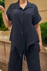 ΠΟΥΚΑΜΙΣΟ ΜΕ ΓΙΑΚΑ ΚΑΙ ΠΕΤΟ ,ΚΛΕΙΝΕΙ ΜΠΡΟΣΤΑ ΜΕ ΔΕΣΙΜΟ ΧΑΜΗΛΑ ΚΑΙ ΚΟΥΜΠΙΑ , ΠΡΟΣΦΕΡΟΝΤΑΣ ΜΙΑ ELEGANT ΚΑΙ ΔΙΑΧΡΟΝΙΚΗ ΕΜΦΑΝΙΣΗ.ΚΑΤΑΣΚΕΥΑΣΜΕΝΟ ΑΠΟ ΧΥΤΟ ΥΦΑΣΜΑ ΔΙΑΚΟΣΜΗΜΕΝΟ ΜΕ ΣΤΡΑΣ . ΣΥΝΘΕΣΗ 95% POLYESTER 5% ELASTIN