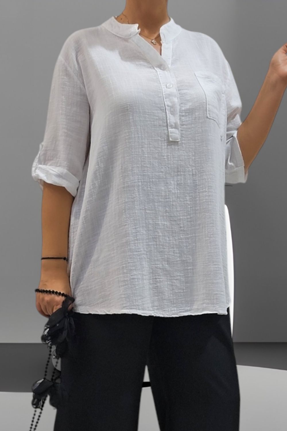 ΠΑΝΕΜΟΡΦΟ ΠΟΥΚΑΜΙΣΟ, ΜΕ V ΜΠΡΟΣΤΑ ΚΑΙ ΚΟΥΜΠΙΑ KAI ΜΑΝΙΚΙ ΠΟΥ ΜΑΖΕΥΕΙ ΜΕ ΘΥΛΙΚΑΚΙ ΣΥΝΘΕΣΗ 100% COTTON .
