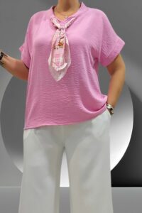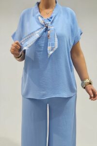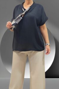 ΣΙΚΑΤΟ ΜΠΛΟΥΖΟ-ΠΟΥΚΑΜΙΣΟ ΣΧΕΔΙΑΣΜΕΝΟ ΓΙΑ ΔΙΑΧΡΟΝΙΚΕΣ ΚΑΙ ΠΡΟΣΕΓΜΕΝΕΣ ΕΜΦΑΝΙΣΕΙΣ . ΔΙΑΘΕΤΕΙ V ΛΑΙΜΟΚΟΨΗ ΕΝΩ ΤΟ ΦΟΥΛΑΡΙ ΣΤΟ ΛΑΙΜΟ ΛΕΙΤΟΥΡΓΕΙ ΣΑΝ ΚΟΜΨΟ ΚΟΣΜΗΜΑ ΔΙΝΟΝΤΑΣ ΜΙΑ ΠΙΝΕΛΙΑ ΣΤΙΛΙΣΤΙΚΗΣ ΑΡΜΟΝΙΑΣ . ΚΑΤΑΣΚΕΥΑΣΜΕΝΟ ΑΠΟ ΑΕΡΙΝΟ ΥΦΑΣΜΑ ΠΟΥ ΑΠΟΠΝΕΕΙ ΚΟΜΨΟΤΗΤΑ ΚΑΙ ΑΝΕΣΗ ΠΟΥ ΤΟ ΚΑΘΙΣΤΑ ΙΔΑΝΙΚΗ ΕΠΙΛΟΓΗ ΓΙΑ ΟΛΕΣ ΤΙΣ ΕΜΦΑΝΙΣΕΙΣ . ΣΥΝΘΕΣΗ 55% POLYESTER 40% VISCOSE 5% ELASTIN