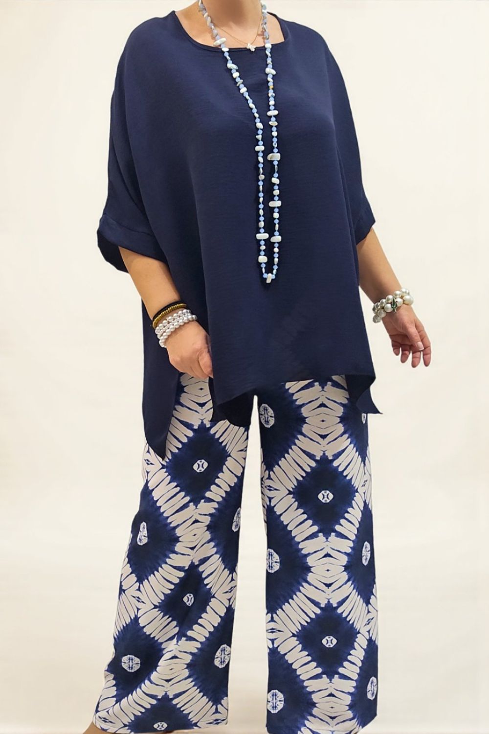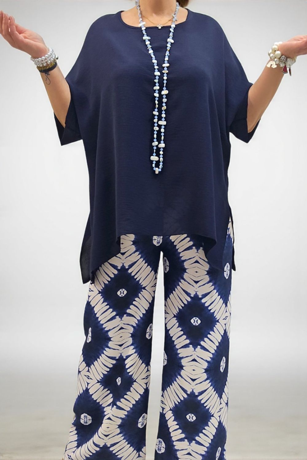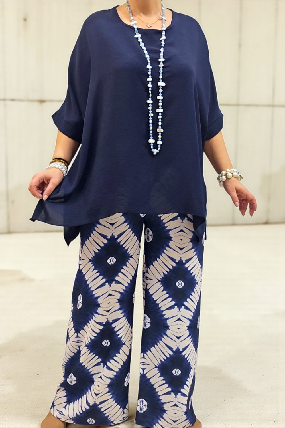 ΑΝΑΒΑΘΜΙΣΤΕ ΤΟ ΣΤΥΛ ΣΑΣ ΜΕ ΕΝΑ ΕΝΤΥΠΩΣΙΑΚΟ ΑΕΡΙΝΟ ΣΕΤ ΠΟΥ ΣΥΝΔΥΑΖΕΙ ΘΗΛΥΚΟΤΗΤΑ ΚΑΙ ΧΑΛΑΡΗ ΠΟΛΥΤΕΛΕΙΑ.ΤΟ ΣΥΝΟΛΟ ΑΠΟΤΕΛΕΙΤΑΙ ΑΠΟ ΜΟΝΟΧΡΩΜΗ ΜΠΛΟΥΖΑ ΜΕ ΑΝΑΛΑΦΡΗ ΥΦΗ ΠΟΥ ΠΡΟΣΦΕΡΕΙ ΜΟΝΑΔΙΚΗ ΡΟΗ ΚΑΙ ΕΚΛΕΠΤΥΣΜΕΝΗ ΚΟΜΨΟΤΗΤΑ,ΕΝΩ ΤΑ ΣΚΙΣΙΜΑΤΑ ΣΤΑ ΠΛΑΪΝΑ ΧΑΡΙΖΟΥΝ ΜΟΝΤΕΡΝΑ ΑΙΣΘΗΤΙΚΗ ΚΑΙ ΚΑΛΥΠΤΟΥΝ ΔΙΑΚΡΙΤΙΚΑ ΤΗ ΣΙΛΟΥΕΤΑ.ΔΙΑΘΕΤΕΙ ΕΥΡΥΧΩΡΑ ΜΑΝΙΚΙΑ ΜΕ ΡΕΒΕΡ.ΚΑΛΥΠΤΕΙ ΣΤΗΘΟΣ ΕΩΣ 158CM , ΠΕΡΙΦΕΡΕΙΑ ΕΩΣ 164CM ΚΑΙ ΜΗΚΟΣ 73CM.Η ΠΑΝΤΕΛΟΝΑ ΣΕ ΦΑΡΔΙΑ,ΑΝΕΤΗ ΓΡΑΜΜΗ ΜΕ ΕΛΑΣΤΙΚΗ ΜΕΣΗ ΚΑΙ ΕΝΤΥΠΩΣΙΑΚΟ ΤΥΠΩΜΑ, ΠΡΟΣΔΙΔΕΙ ΣΤΥΛ, ΚΙΝΗΣΗ ΚΑΙ ΞΕΧΩΡΙΣΤΟ ΧΑΡΑΚΤΗΡΑ..ΚΑΛΥΠΤΕΙ ΜΕΣΗ ΕΩΣ 136CM ΚΑΙ ΠΕΡΙΦΕΡΕΙΑ ΕΩΣ 150CM.ΕΝΑ ΟΛΟΚΛΗΡΩΜΕΝΟ OYTFIT ΓΙΑ ΠΡΟΣΕΓΜΕΝΕΣ ΕΜΦΑΝΙΣΕΙΣ,ΟΛΗ ΤΗΝ ΗΜΕΡΑ.ΣΥΝΘΕΣΗ 55% POLYESTER 40% VISCOSE 5% ELASTIN
