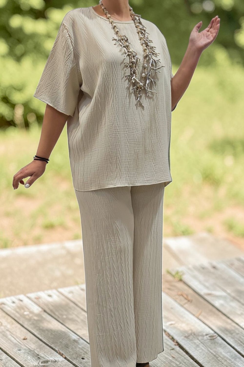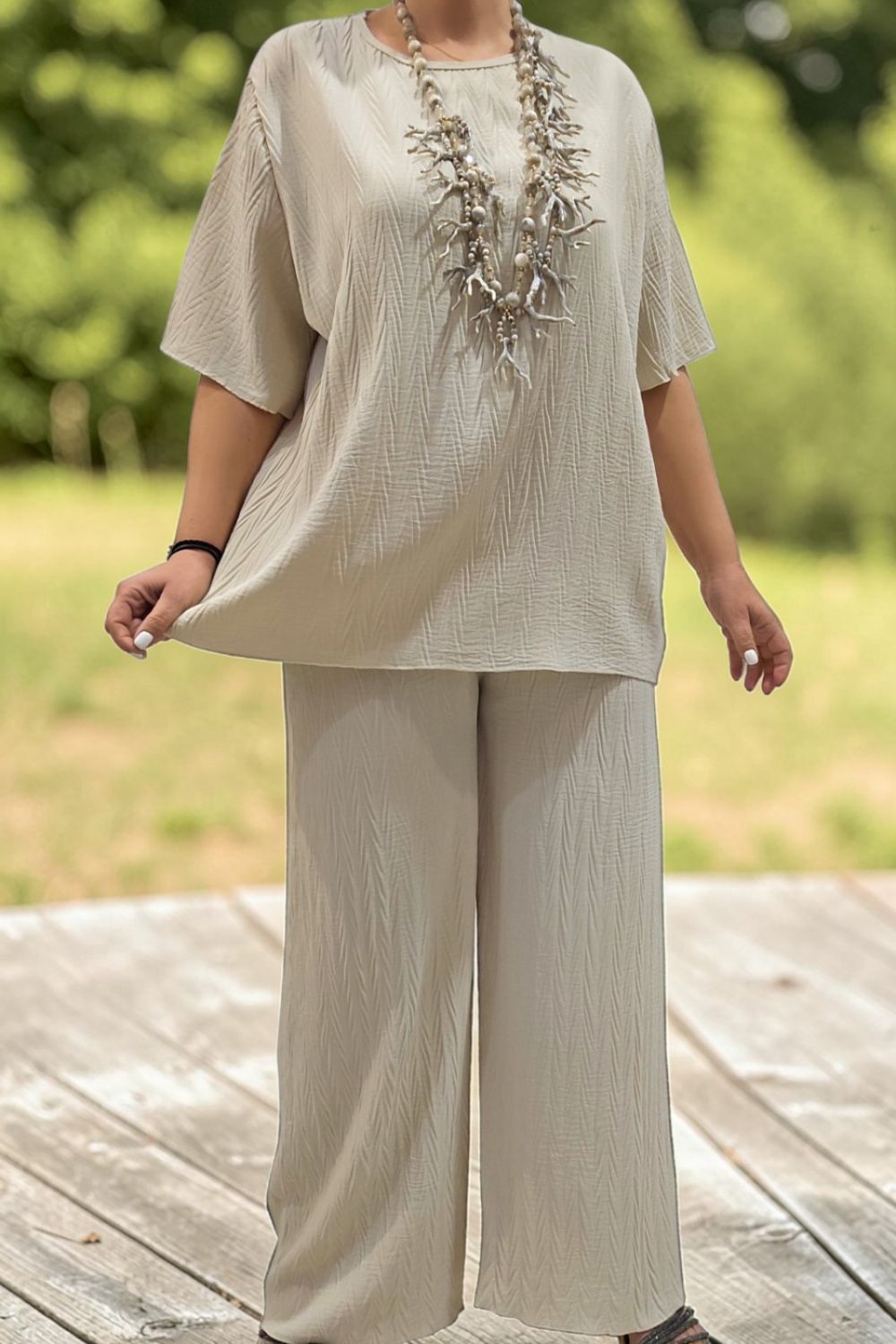 ΑΝΑΒΑΘΜΙΣΤΕ ΤΗΝ ΚΑΘΗΜΕΡΙΝΗ ΣΑΣ ΕΜΦΑΝΙΣΗ ΜΕ ΑΥΤΟ ΤΟ ΔΙΑΧΡΟΝΙΚΟ ΣΕΤ ,ΣΧΕΔΙΑΣΜΕΝΟ ΜΕ ΓΝΩΜΟΝΑ ΤΗΝ ΑΝΕΣΗ ΚΑΙ ΤΟ ΣΤΥΛ..Η ΙΔΙΑΙΤΕΡΗ ΚΡΕΠ-ΑΝΑΓΛΥΦΗ ΥΦΗ ΤΟΥ ΠΡΟΣΔΙΔΕΙ ΒΑΘΟΣ ΚΑΙ ΧΑΡΑΚΤΗΡΑ,ΚΑΘΙΣΤΩΝΤΑΣ ΤΟ ΙΔΑΝΙΚΟ ΤΟΣΟ ΓΙΑ ΠΡΩΙΝΕΣ ΟΣΟ ΚΑΙ ΓΙΑ ΧΑΛΑΡΕΣ ΒΡΑΔΙΝΕΣ ΕΞΟΔΟΥΣ.ΑΠΟΤΕΛΕΙΤΑΙ ΑΠΟ ΜΠΛΟΥΖΑ ΠΟΥ ΔΙΑΘΕΤΕΙ ΑΝΕΤΗ ΓΡΑΜΜΗ ΚΑΙ ΧΑΛΑΡΑ ΜΑΝΙΚΙΑ ΠΟΥ ΠΡΟΣΦΕΡΟΥΝ ΕΛΕΥΘΕΡΙΑ ΚΙΝΗΣΕΩΝ.ΚΑΛΥΠΤΕΙ ΣΤΗΘΟΣ ΕΩΣ 136CM ΚΑΙ ΠΕΡΙΦΕΡΕΙΑ ΕΩΣ 140CM.ΤΟ ΜΗΚΟΣ ΤΗΣ ΜΠΛΟΥΖΑΣ ΕΙΝΑΙ 72CM.ΤΟ ΠΑΝΤΕΝΟΝΙ ΔΙΑΘΕΤΕΙ ΛΑΣΤΙΧΟ ΣΤΗ ΜΕΣΗ ΓΙΑ ΑΝΕΤΗ ΕΦΑΡΜΟΓΗ ΚΑΙ ΓΡΑΜΜΗ ΠΟΥ ΚΟΛΑΚΕΥΕΙ ΤΟ ΣΩΜΑ.ΚΑΛΥΠΤΕΙ ΜΕΣΗ ΕΩΣ 118CM ΚΑΙ ΠΕΡΙΦΕΡΕΙΑ ΕΩΣ 134CM.ΣΥΝΘΕΣΗ 50% COTTON 45% VISCOSE 5% ELASTIN.