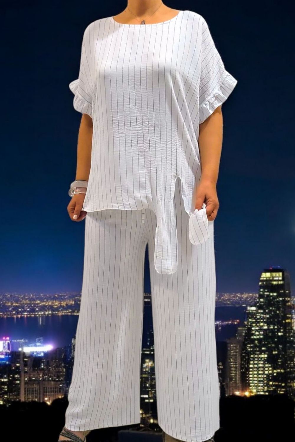 ΣΕΤ ΡΙΓΕ ΑΠΟ ΧΥΤΟ ΥΦΑΣΜΑ ΠΟΥ ΣΥΝΔΥΑΖΕΙ ΑΝΕΣΗ ΚΑΙ ΚΟΜΨΟΤΗΤΑ.Η ΜΠΛΟΥΖΑ ΔΙΑΘΕΤΕΙ ΜΙΚΡΟ ΒΟΛΑΝ ΣΤΑ ΜΑΝΙΚΙΑ ΠΟΥ ΠΡΟΣΘΕΤΕΙ ΜΙΑ ΡΟΜΑΝΤΙΚΗ ΠΙΝΕΛΙΑ,ΕΝΩ ΤΟ ΔΕΣΙΜΟ ΣΤΟ ΠΛΑΊ ΠΡΟΣΦΕΡΕΙ ΘΗΛΥΚΟ ΧΑΡΑΚΤΗΡΑ.ΚΑΛΥΠΤΕΙ ΣΤΗΘΟΣ ΕΩΣ 134CM ΚΑΙ ΠΕΡΙΦΕΡΕΙΑ ΕΩΣ 134CM,ΜΗΚΟΣ 72CM.Η ΠΑΝΤΕΛΟΝΑ ΕΧΕΙ ΛΑΣΤΙΧΟ ΣΤΗΝ ΜΕΣΗ ΚΑΙ ΚΟΡΔΟΝΙ ΠΟΥ ΔΕΝΕΙ,ΕΞΑΣΦΑΛΙΖΟΝΤΑΣ ΑΨΟΓΗ ΕΦΑΡΜΟΓΗ ΚΑΙ ΑΝΕΣΗ ΚΑΘ΄ΟΛΗ ΤΗΝ ΔΙΑΡΚΕΙΑ ΤΗΣ ΗΜΕΡΑΣ.ΚΑΛΥΠΤΕΙ ΜΕΣΗ ΕΩΣ 122CM ΚΑΙ ΠΕΡΙΦΕΡΕΙΑ ΕΩΣ 142CM.ΙΔΑΝΙΚΟ ΣΥΝΟΛΟ ΓΙΑ ΚΑΛΟΚΑΙΡΙΝΕΣ ΕΜΦΑΝΙΣΕΙΣ.ΣΥΝΘΕΣΗ 95% VISCOSE 5% ELASTIN.