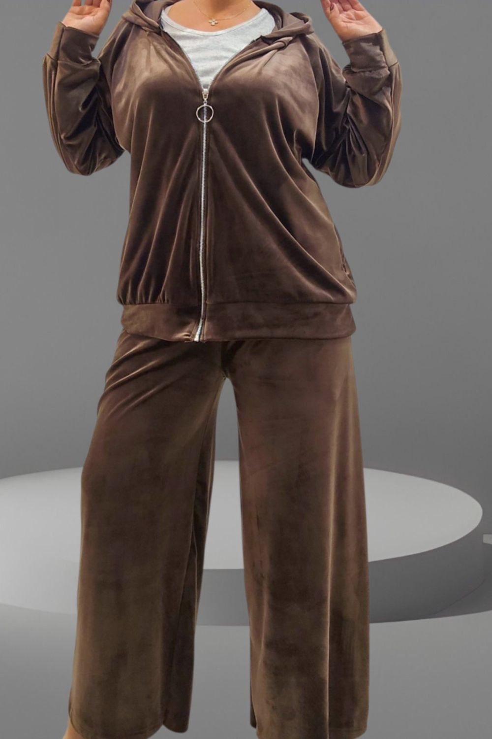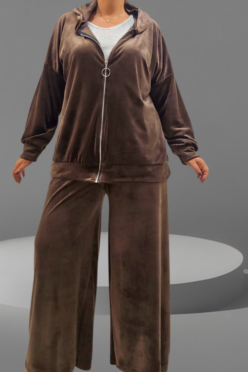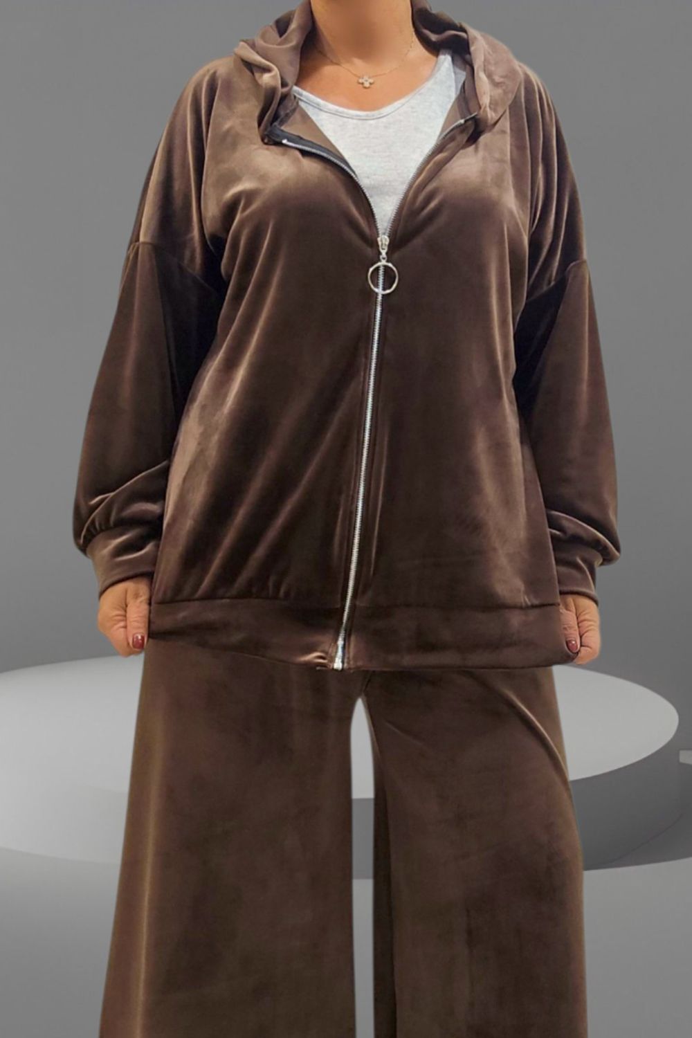ΑΠΟΛΥΤΗ ΑΝΕΣΗ ΚΑΙ ΣΤΥΛ ΣΕ ΕΝΑ ΣΕΤ ΓΙΑ ΜΕΓΑΛΑ ΜΕΓΕΘΗ ΠΟΥ ΘΑ ΑΓΑΠΗΣΕΤΕ.ΣΕΤ ΒΕΛΟΥΤΕ ΕΞΑΙΡΕΤΙΚΑ ΑΠΑΛΟ ΠΟΥ ΧΑΡΙΖΕΙ ΜΟΝΑΔΙΚΗ ΑΙΣΘΗΣΗ ΑΝΕΣΗΣ ΚΑΙ ΚΟΜΨΟΤΗΤΑΣ.Η ΖΑΚΕΤΑ ΜΕ ΚΟΥΚΟΥΛΑ ΚΛΕΙΝΕΙ ΜΠΡΟΣΤΑ ΜΕ ΦΕΡΜΟΥΑΡ ΚΑΙ ΜΠΑΣΚΑ ΣΤΟ ΤΕΛΕΙΩΜΑ .ΚΑΛΥΠΤΕΙ ΣΤΗΘΟΣ ΕΩΣ 156CM ΚΑΙ ΠΕΡΙΦΕΡΕΙΑ ΕΩΣ 156 CM, ΜΗΚΟΣ 72CM.ΤΟ ΠΑΝΤΕΛΟΝΙ ΣΕ ΑΝΕΤΗ ΓΡΑΜΜΗ ΔΙΑΘΕΤΕΙ ΛΑΣΤΙΧΟ ΣΤΗ ΜΕΣΗ , ΚΑΛΥΠΤΕΙ ΜΕΣΗ ΕΩΣ 156CM , ΠΕΡΙΦΕΡΕΙΑ ΕΩΣ 162CM ,ΜΗΚΟΣ 98CM. ΣΥΝΘΕΣΗ 60% VISCOSE 35% POLYESTER 5% ELASTIN.