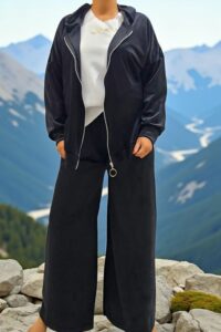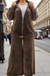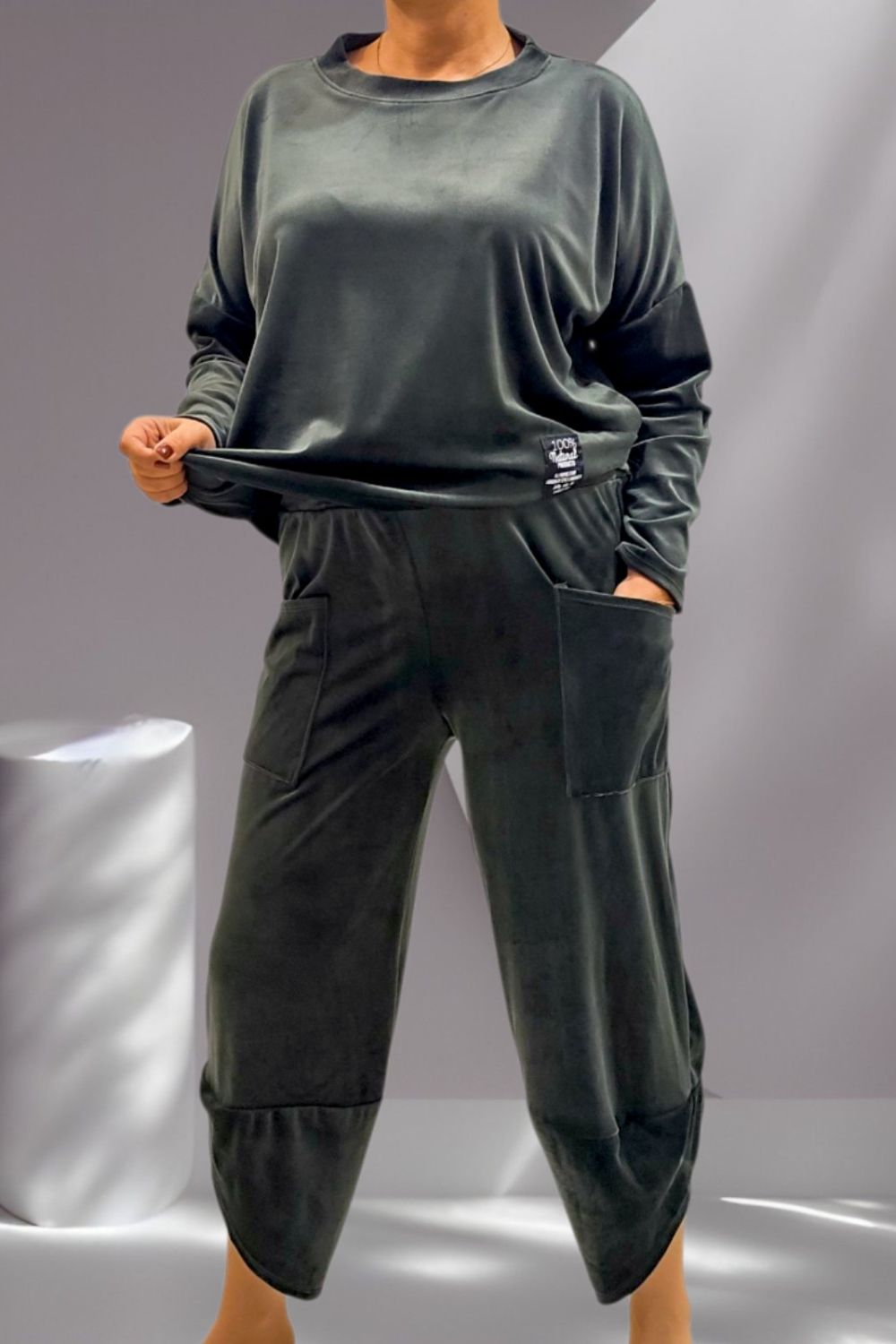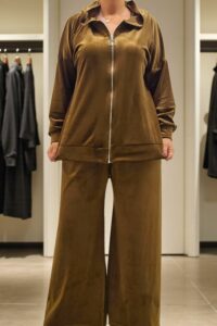 ΑΠΟΛΥΤΗ ΑΝΕΣΗ ΚΑΙ ΣΤΥΛ ΣΕ ΕΝΑ ΣΕΤ ΓΙΑ ΜΕΓΑΛΑ ΜΕΓΕΘΗ ΠΟΥ ΘΑ ΑΓΑΠΗΣΕΤΕ.ΣΕΤ ΒΕΛΟΥΤΕ ΕΞΑΙΡΕΤΙΚΑ ΑΠΑΛΟ ΠΟΥ ΧΑΡΙΖΕΙ ΜΟΝΑΔΙΚΗ ΑΙΣΘΗΣΗ ΑΝΕΣΗΣ ΚΑΙ ΚΟΜΨΟΤΗΤΑΣ.Η ΖΑΚΕΤΑ ΜΕ ΚΟΥΚΟΥΛΑ ΚΛΕΙΝΕΙ ΜΠΡΟΣΤΑ ΜΕ ΦΕΡΜΟΥΑΡ ΚΑΙ ΜΠΑΣΚΑ ΣΤΟ ΤΕΛΕΙΩΜΑ .ΚΑΛΥΠΤΕΙ ΣΤΗΘΟΣ ΕΩΣ 156CM ΚΑΙ ΠΕΡΙΦΕΡΕΙΑ ΕΩΣ 156 CM, ΜΗΚΟΣ 72CM.ΤΟ ΠΑΝΤΕΛΟΝΙ ΣΕ ΑΝΕΤΗ ΓΡΑΜΜΗ ΔΙΑΘΕΤΕΙ ΛΑΣΤΙΧΟ ΣΤΗ ΜΕΣΗ , ΚΑΛΥΠΤΕΙ ΜΕΣΗ ΕΩΣ 156CM , ΠΕΡΙΦΕΡΕΙΑ ΕΩΣ 162CM ,ΜΗΚΟΣ 98CM. ΣΥΝΘΕΣΗ 60% VISCOSE 35% POLYESTER 5% ELASTIN.