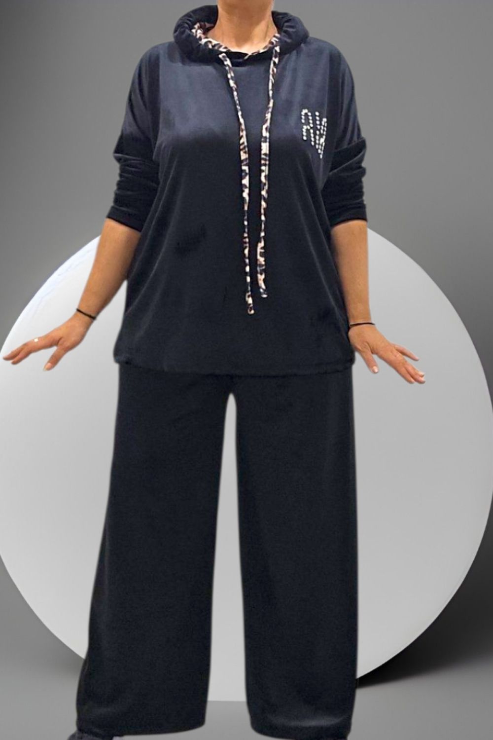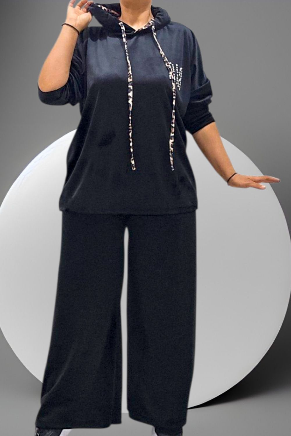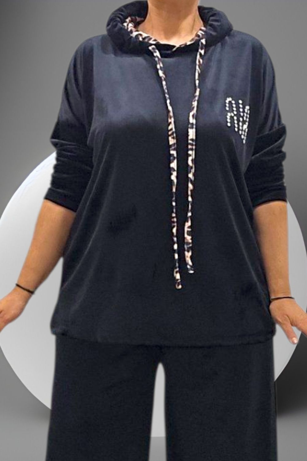 ΑΝΑΝΕΩΣΤΕ ΤΟ CASUAL LOOK ΣΑΣ ΜΕ ΑΥΤΟ ΤΟ PLUS SIZE ΒΕΛΟΥΔΙΝΟ ΣΕΤ ΠΟΥ ΣΥΝΔΥΑΖΕΙ ΑΝΕΣΗ ΚΑΙ ΚΟΜΨΟΤΗΤΑ.Η ΚΟΥΚΟΥΛΑ ΔΙΑΘΕΤΕΙ ΕΣΩΤΕΡΙΚΗ ΕΠΕΝΔΥΣΗ ANIMAL PRINT,ΕΝΩ ΤΟ ΚΟΡΔΟΝΙ ΠΟΥ ΔΕΝΕΙ ΕΧΕΙ ΤΟ ΙΔΙΟ ΜΟΤΙΒΟ,ΠΡΟΣΘΕΤΟΝΤΑΣ ΜΟΝΤΕΡΝΑ ΠΙΝΕΛΙΑ.ΔΙΑΚΟΣΜΗΤΙΚΑ ΣΤΡΑΣΑΚΙΑ ΣΤΟ ΜΠΡΟΣΤΙΝΟ ΜΕΡΟΣ ΧΑΡΙΖΟΥΝ ΜΙΑ ΔΙΑΚΡΙΤΙΚΗ ΛΑΜΨΗ.ΚΑΛΥΠΤΕΙ ΣΤΗΘΟΣ ΕΩΣ 156CM ΚΑΙ ΠΕΡΙΦΕΡΕΙΑ ΕΩΣ 156CM.ΜΗΚΟΣ 72CM.Η ΠΑΝΤΕΛΟΝΑ ΜΕ ΛΑΣΤΙΧΟ ΣΤΗ ΜΕΣΗ ΠΡΟΣΦΕΡΕΙ ΑΝΕΤΗ ΕΦΑΡΜΟΓΗ ΚΑΙ ΤΕΛΕΙΑ ΕΦΑΡΜΟΓΗ.ΚΑΛΥΠΤΕΙ ΜΕΣΗ ΕΩΣ 150CM ΚΑΙ ΠΕΡΙΦΕΡΕΙΑ ΕΩΣ 156CM.ΜΗΚΟΣ 101CM.ΣΥΝΘΕΣΗ 95% VISCOSE 5% ELASTIN.