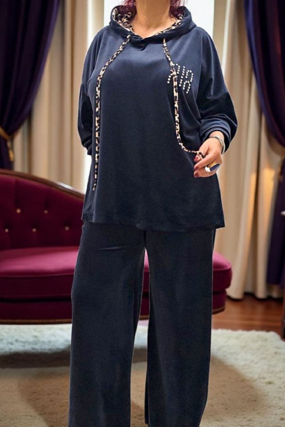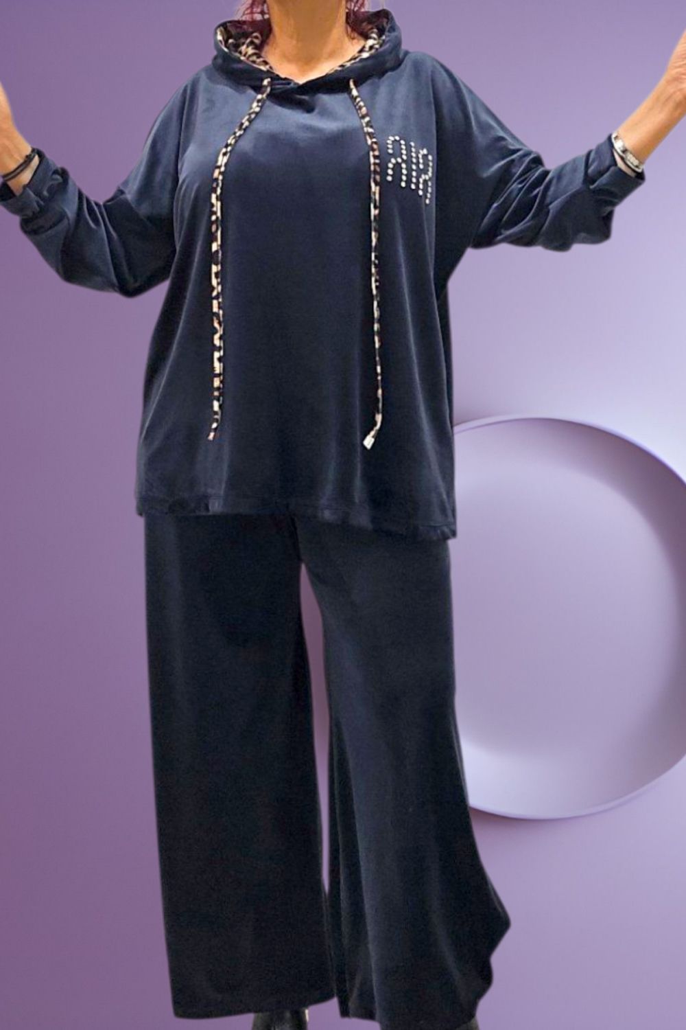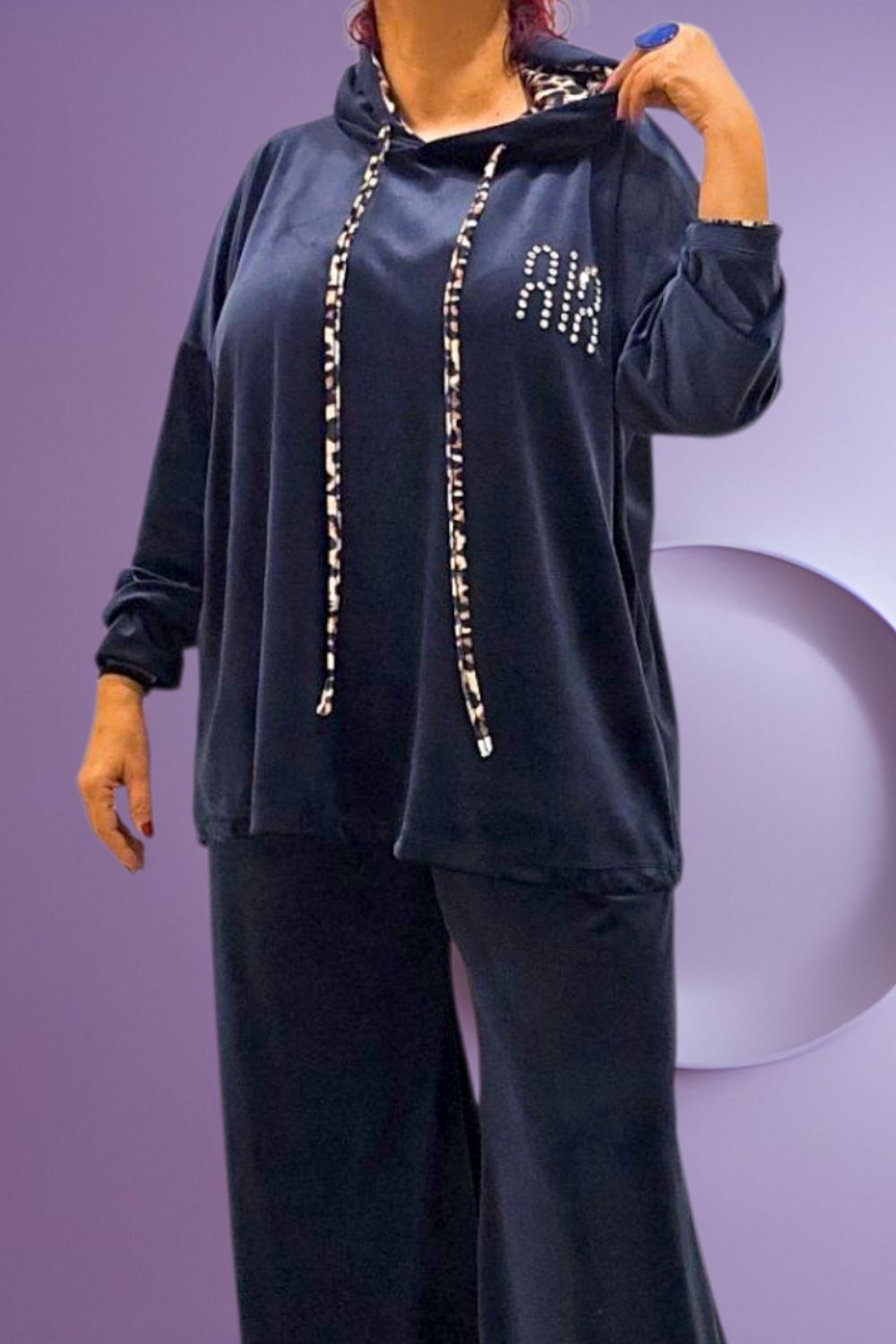ΑΝΑΝΕΩΣΤΕ ΤΟ CASUAL LOOK ΣΑΣ ΜΕ ΑΥΤΟ ΤΟ PLUS SIZE ΒΕΛΟΥΔΙΝΟ ΣΕΤ ΠΟΥ ΣΥΝΔΥΑΖΕΙ ΑΝΕΣΗ ΚΑΙ ΚΟΜΨΟΤΗΤΑ.Η ΚΟΥΚΟΥΛΑ ΔΙΑΘΕΤΕΙ ΕΣΩΤΕΡΙΚΗ ΕΠΕΝΔΥΣΗ ANIMAL PRINT,ΕΝΩ ΤΟ ΚΟΡΔΟΝΙ ΠΟΥ ΔΕΝΕΙ ΕΧΕΙ ΤΟ ΙΔΙΟ ΜΟΤΙΒΟ,ΠΡΟΣΘΕΤΟΝΤΑΣ ΜΟΝΤΕΡΝΑ ΠΙΝΕΛΙΑ.ΔΙΑΚΟΣΜΗΤΙΚΑ ΣΤΡΑΣΑΚΙΑ ΣΤΟ ΜΠΡΟΣΤΙΝΟ ΜΕΡΟΣ ΧΑΡΙΖΟΥΝ ΜΙΑ ΔΙΑΚΡΙΤΙΚΗ ΛΑΜΨΗ.ΚΑΛΥΠΤΕΙ ΣΤΗΘΟΣ ΕΩΣ 156CM ΚΑΙ ΠΕΡΙΦΕΡΕΙΑ ΕΩΣ 156CM.ΜΗΚΟΣ 72CM.Η ΠΑΝΤΕΛΟΝΑ ΜΕ ΛΑΣΤΙΧΟ ΣΤΗ ΜΕΣΗ ΠΡΟΣΦΕΡΕΙ ΑΝΕΤΗ ΕΦΑΡΜΟΓΗ ΚΑΙ ΤΕΛΕΙΑ ΕΦΑΡΜΟΓΗ.ΚΑΛΥΠΤΕΙ ΜΕΣΗ ΕΩΣ 150CM ΚΑΙ ΠΕΡΙΦΕΡΕΙΑ ΕΩΣ 156CM.ΜΗΚΟΣ 101CM.ΣΥΝΘΕΣΗ 95% VISCOSE 5% ELASTIN.