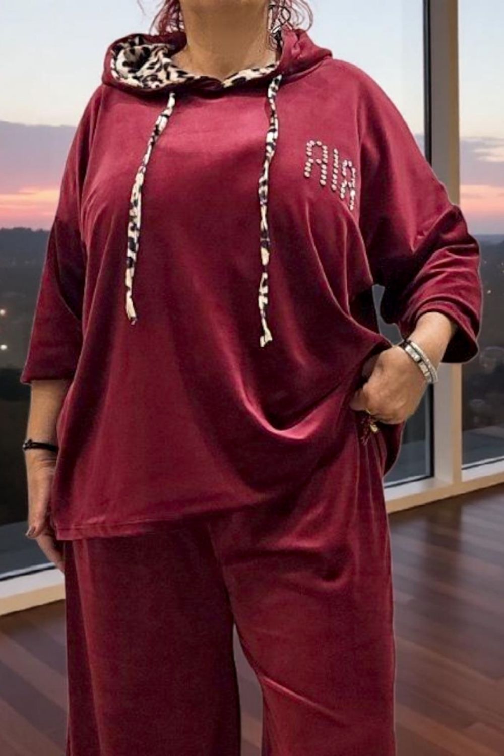 ΑΝΑΝΕΩΣΤΕ ΤΟ CASUAL LOOK ΣΑΣ ΜΕ ΑΥΤΟ ΤΟ PLUS SIZE ΒΕΛΟΥΔΙΝΟ ΣΕΤ ΠΟΥ ΣΥΝΔΥΑΖΕΙ ΑΝΕΣΗ ΚΑΙ ΚΟΜΨΟΤΗΤΑ.Η ΚΟΥΚΟΥΛΑ ΔΙΑΘΕΤΕΙ ΕΣΩΤΕΡΙΚΗ ΕΠΕΝΔΥΣΗ ANIMAL PRINT,ΕΝΩ ΤΟ ΚΟΡΔΟΝΙ ΠΟΥ ΔΕΝΕΙ ΕΧΕΙ ΤΟ ΙΔΙΟ ΜΟΤΙΒΟ,ΠΡΟΣΘΕΤΟΝΤΑΣ ΜΟΝΤΕΡΝΑ ΠΙΝΕΛΙΑ.ΔΙΑΚΟΣΜΗΤΙΚΑ ΣΤΡΑΣΑΚΙΑ ΣΤΟ ΜΠΡΟΣΤΙΝΟ ΜΕΡΟΣ ΧΑΡΙΖΟΥΝ ΜΙΑ ΔΙΑΚΡΙΤΙΚΗ ΛΑΜΨΗ.ΚΑΛΥΠΤΕΙ ΣΤΗΘΟΣ ΕΩΣ 156CM ΚΑΙ ΠΕΡΙΦΕΡΕΙΑ ΕΩΣ 156CM.ΜΗΚΟΣ 72CM.Η ΠΑΝΤΕΛΟΝΑ ΜΕ ΛΑΣΤΙΧΟ ΣΤΗ ΜΕΣΗ ΠΡΟΣΦΕΡΕΙ ΑΝΕΤΗ ΕΦΑΡΜΟΓΗ ΚΑΙ ΤΕΛΕΙΑ ΕΦΑΡΜΟΓΗ.ΚΑΛΥΠΤΕΙ ΜΕΣΗ ΕΩΣ 150CM ΚΑΙ ΠΕΡΙΦΕΡΕΙΑ ΕΩΣ 156CM.ΜΗΚΟΣ 101CM.ΣΥΝΘΕΣΗ 95% VISCOSE 5% ELASTIN.