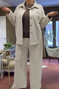 ΣΕΤ ΜΕ ΠΟΥΚΑΜΙΣΟ ΚΑΙ ΠΑΝΤΕΛΟΝΑ ΣΕ ΝΕΟ,ΜΟΝΤΕΡΝΟ ΥΦΑΣΜΑ ΤΗΣ ΣΕΖΟΝ.ΤΟ ΥΦΑΣΜΑ ΕΧΕΙ ΑΝΑΓΛΥΦΗ ΥΦΗ ΜΕ ΔΙΑΚΡΙΤΙΚΟ ΣΧΕΔΙΟ,ΠΟΥ ΧΑΡΙΖΕΙ ΚΟΜΨΟΤΗΤΑ ΚΑΙ ΜΟΝΤΕΡΝΟ ΧΑΡΑΚΤΗΡΑ.ΤΟ ΠΟΥΚΑΜΙΣΟ ΔΙΑΘΕΤΕΙ ΓΙΑΚΑ,ΤΣΕΠΗ ΣΤΟ ΠΑΝΩ ΑΡΙΣΤΕΡΟ ΜΕΡΟΣ ΚΑΙ ΜΠΡΟΣΤΙΝΟ ΚΛΕΙΣΙΜΟ ΜΕ ΚΟΥΜΠΙΑ,ΜΠΟΡΕΙ ΝΑ ΦΟΡΕΘΕΙ ΚΑΙ ΑΝΟΙΧΤΟ ΓΙΑ ΠΙΟ ΧΑΛΑΡΗ ΕΜΦΑΝΙΣΗ.ΚΑΛΥΠΤΕΙ ΣΤΗΘΟΣ ΕΩΣ 144CM ΚΑΙ ΠΕΡΙΦΕΡΕΙΑ ΕΩΣ 140CM.Η ΠΑΝΤΕΛΟΝΑ ΕΧΕΙ ΛΑΣΤΙΧΟ ΣΤΗ ΜΕΣΗ ΚΑΙ ΚΟΡΔΟΝΙ ΠΟΥ ΔΕΝΕΙ,ΠΡΟΣΦΕΡΟΝΤΑΣ ΑΝΕΣΗ ΚΑΙ ΤΕΛΕΙΑ ΕΦΑΡΜΟΓΗ.ΚΑΛΥΠΤΕΙ ΜΕΣΗ ΕΩΣ 144CM ΚΑΙ ΠΕΡΙΦΕΡΕΙΑ ΕΩΣ 158CM.ΕΝΑ ΚΟΜΨΟ ΚΑΙ ΕΥΚΟΛΟΦΟΡΕΤΟ ΣΕΤ,ΙΔΑΝΙΚΟ ΓΙΑ ΚΑΘΕ ΠΕΡΙΣΤΑΣΗ.ΣΥΝΘΕΣΗ 50% VISCOSE 50% POLYESTER.